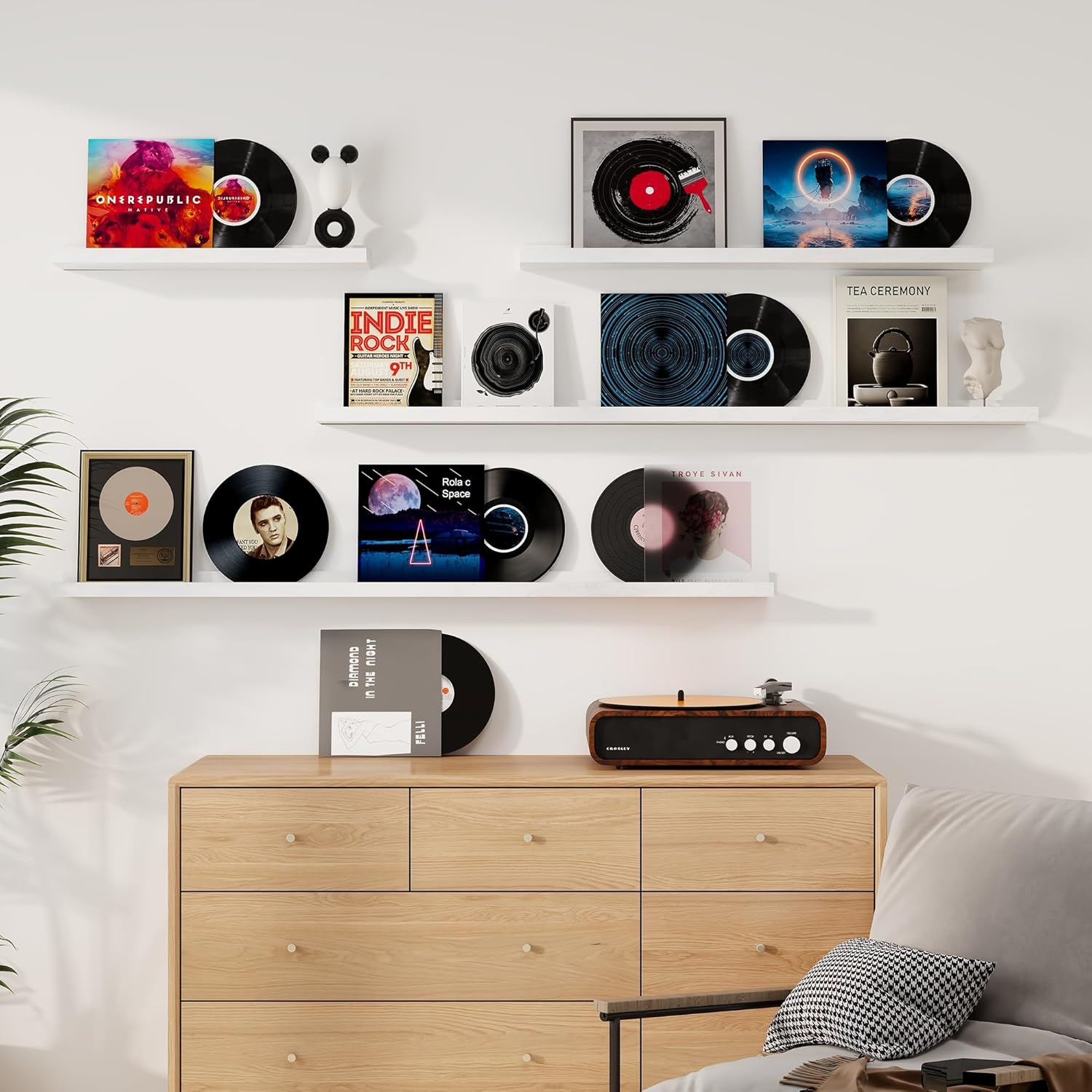 • Picture Ledge Design: Ideal for displaying photos, artwork, small plants, or collectibles, these shelves feature a thoughtful ledge design with a subtle lip and a shallow groove behind it. This design securely holds items in place while maintaining a clean, modern look.