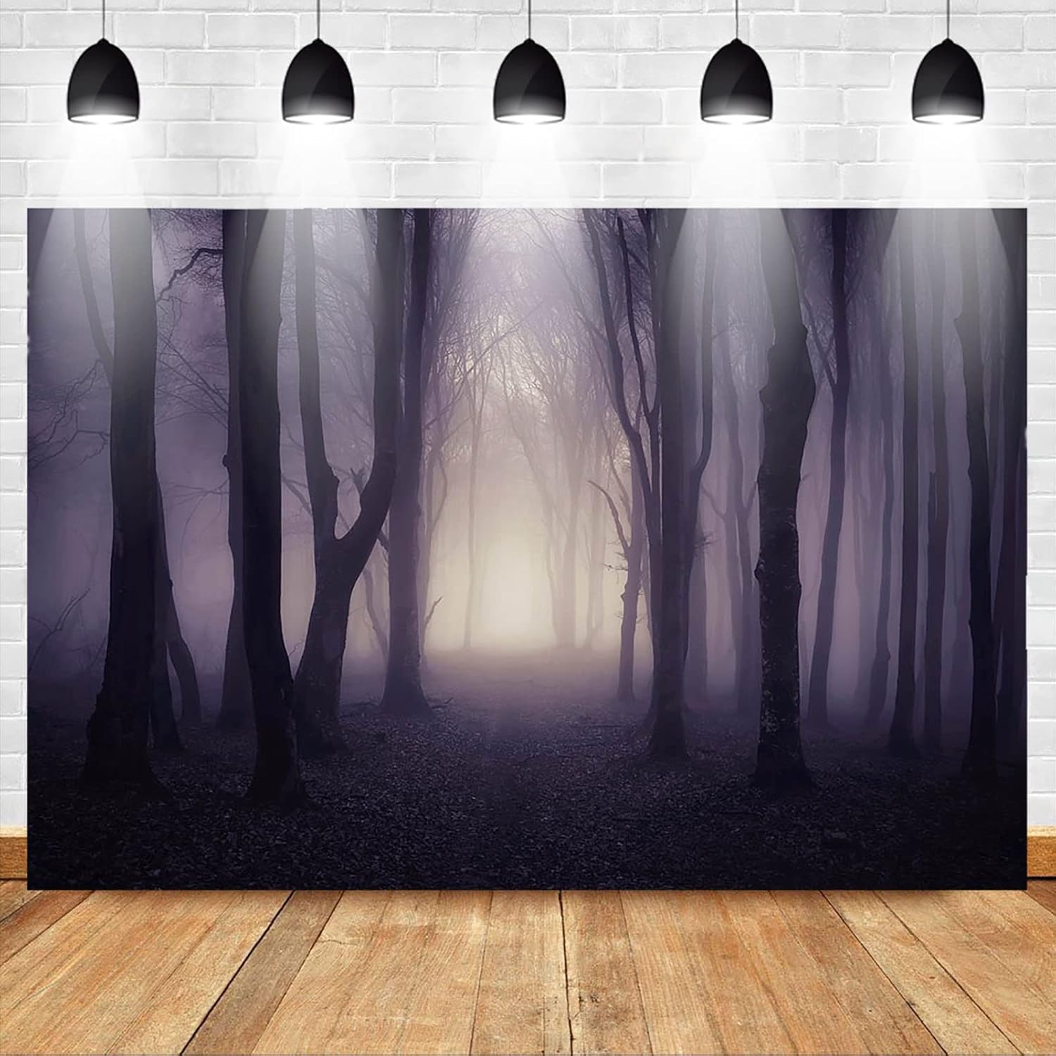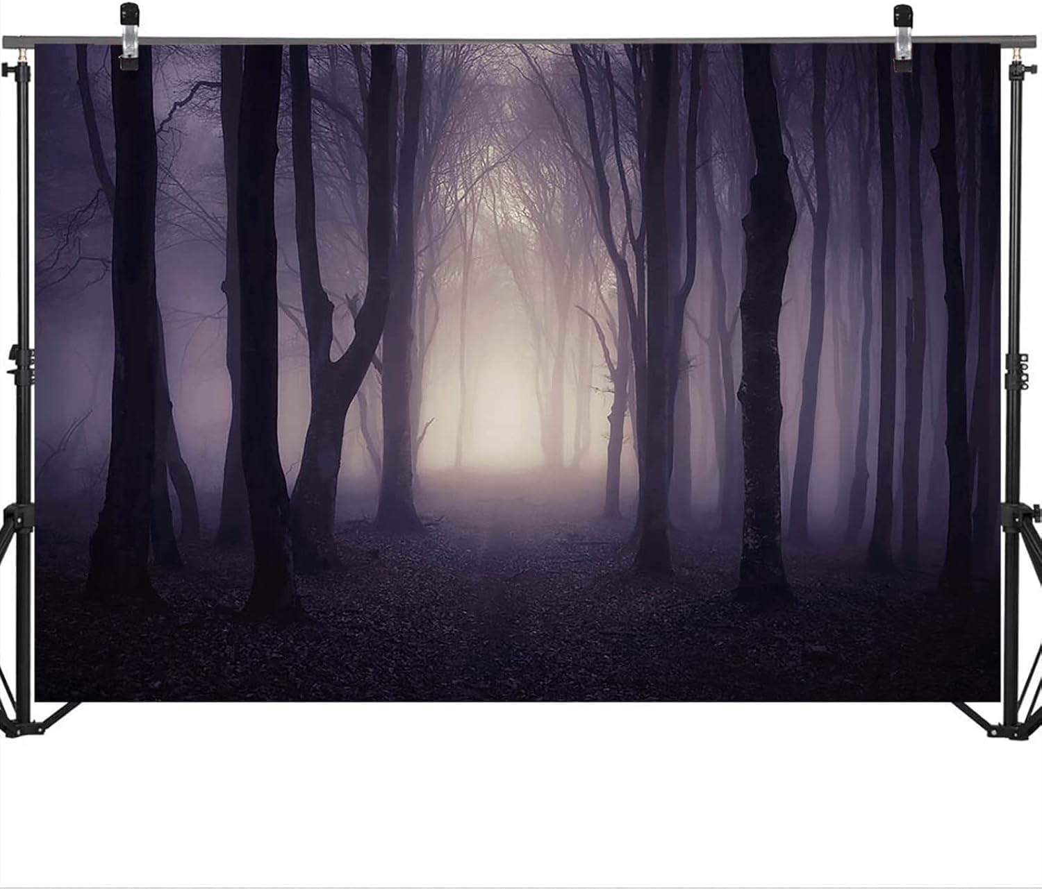 Mocsicka Halloween Photo Backdrop Misty Woods Dark Gloomy Forest Witch Wizard Party Background Halloween Night Ghost Photography Backdrops (10x8ft)