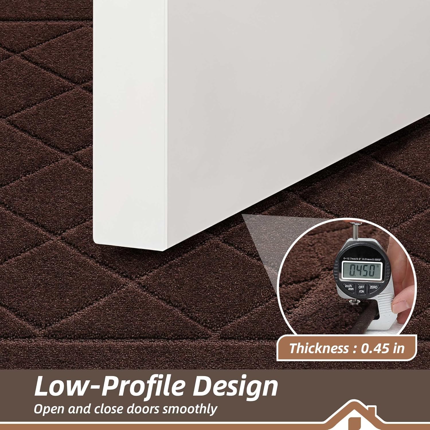 - Stylish and Low Profile Design: Fashionable geometric patterns are suitable for most kinds of home décor. Our doormats measure 24" x 36" x 0.45", low-profile design and reinforced overlock edges to ensure that doors won't get stuck or the door rug go curling. Note: Please confirm the height of the door gap before purchasing