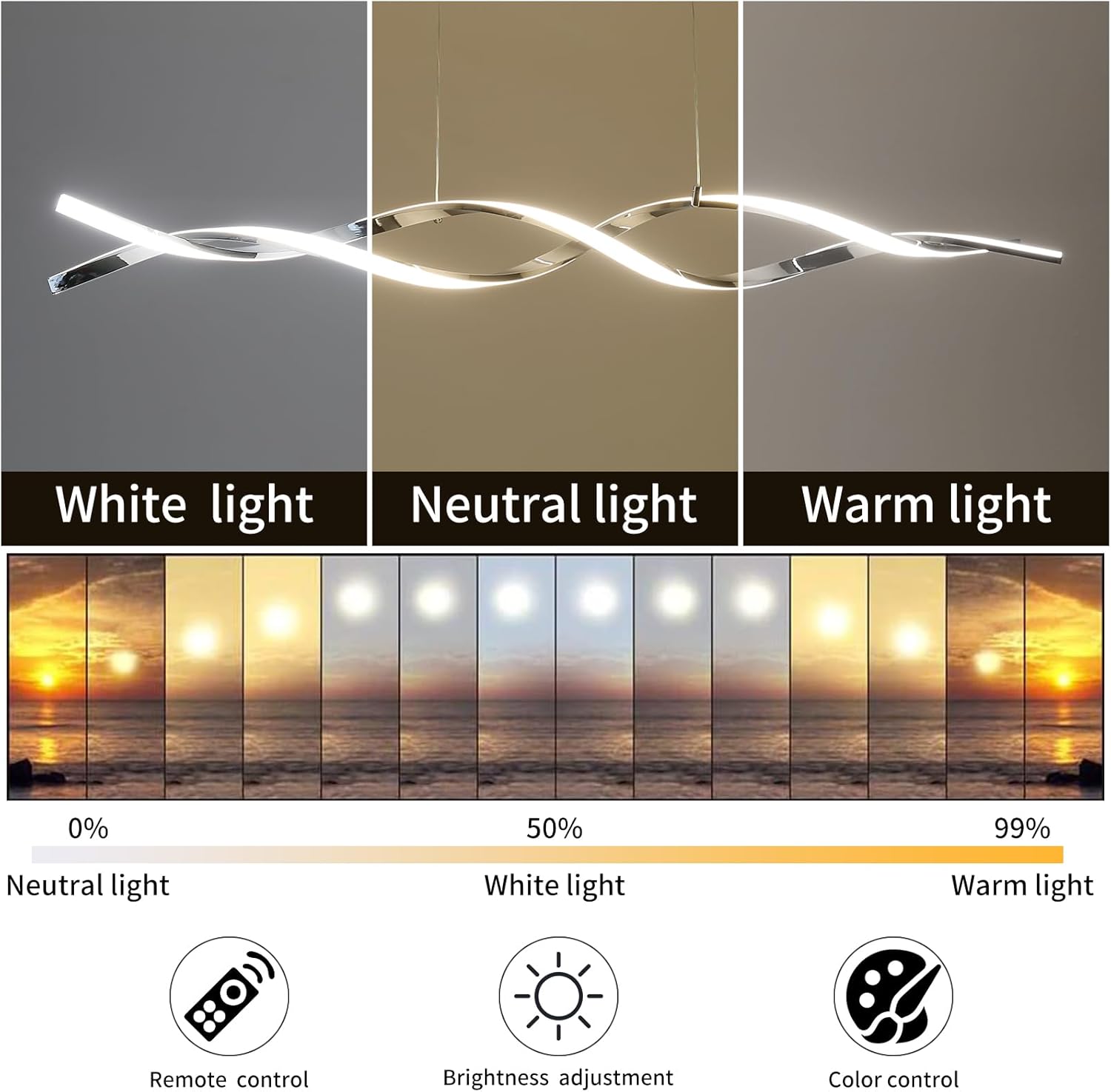 - Dimmable Modern Chandelier :LED chandelier can be dimmed by remote control, from 10% to 100% fully dimmable, and you can remotely control the color temperature of LED chandelier from 3000K-6000K, the light brightness from dark to bright, no eye damage, no flicker. You can choose the light color and brightness you need by remote control, so you can have different light with you in various situations.