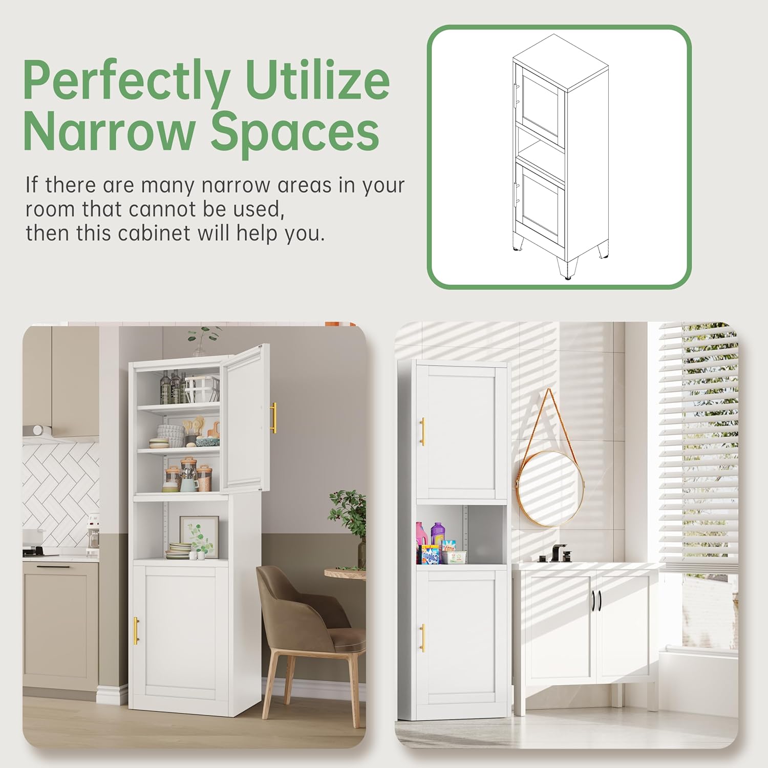 Tall Narrow Storage Cabinet 66.93" H Tall Bathroom Cabinets Metal Pantry Cabinet, 4 Adjustable Shelves for Kitchen, Home Office, Living Room, Dinning Room (16 inches Wide White)