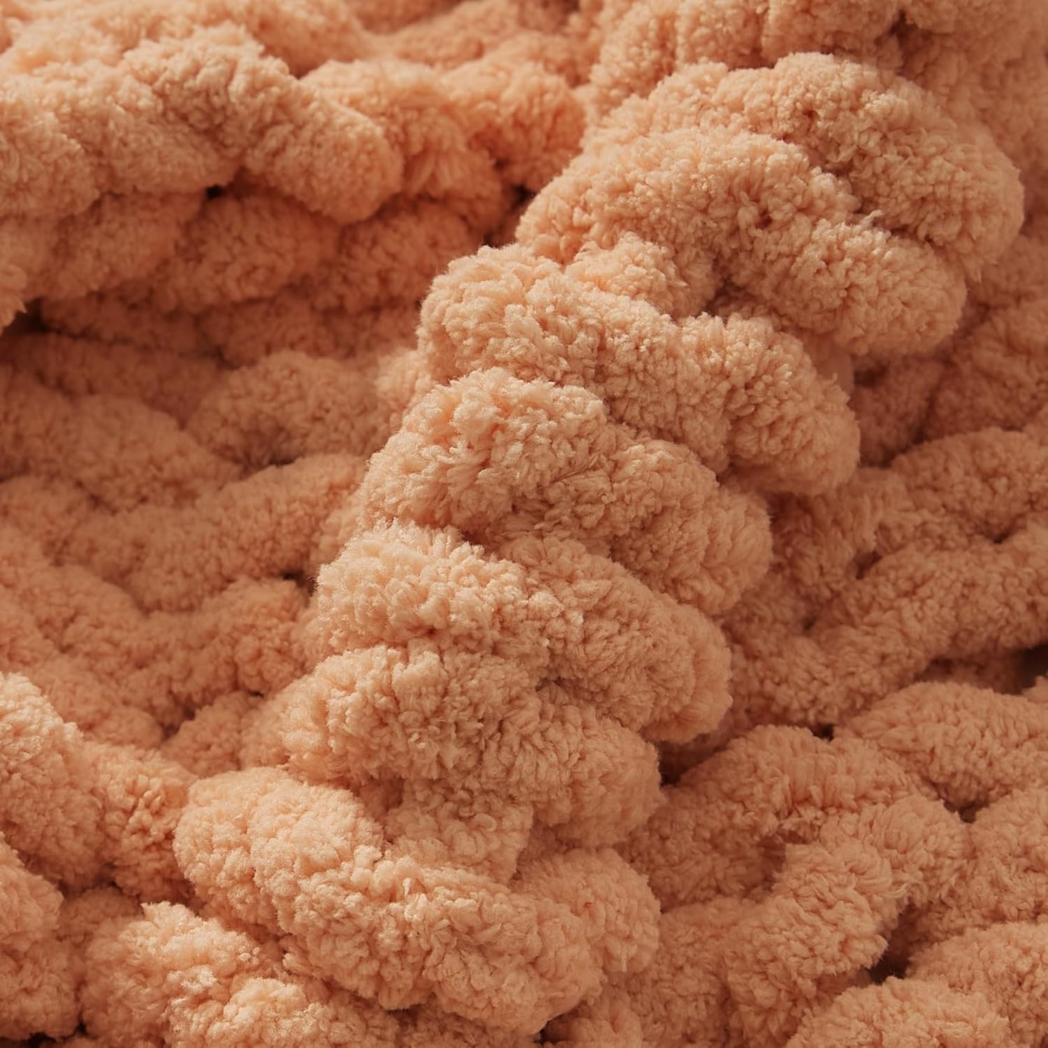 WESHIONGOO Chunky Knit Blanket Throw Knitted Throw Blankets for Couch Bed Fluffy Soft Blanket with Jumbo Chenille Yarn Thick 100% Handmade(Peach Fuzz, 50"×60")