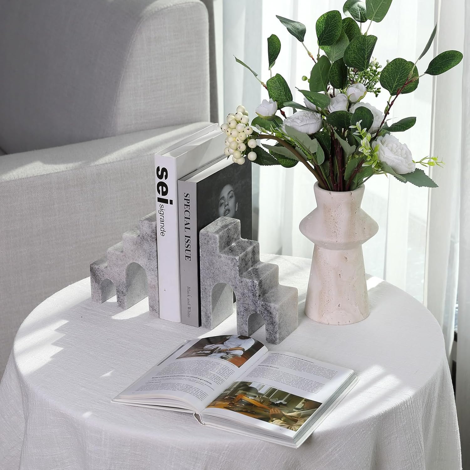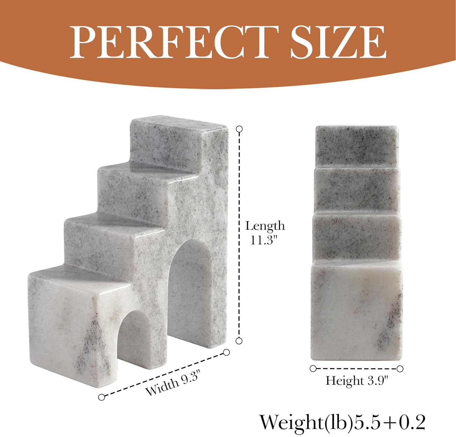 - Durable and Practical ---- The marble bookends are great for organizing your books, CDs, DVDs, and magazines, these book stoppers will make your reading time better and your bookshelf more tidy and organized. The aesthetic book ends also maintain long-term stability and will not be deformed by external factors, ensuring that your books are always securely placed.