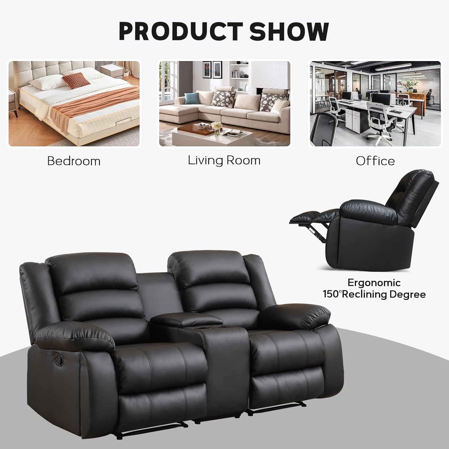 - 【Hidden Storage Compartment】: The loveseat recliner includes a hidden storage compartment in the center console. This compartment provides discreet storage space for small items such as remote controls, magazines, or other essentials, helping to keep your living area organized and clutter-free.