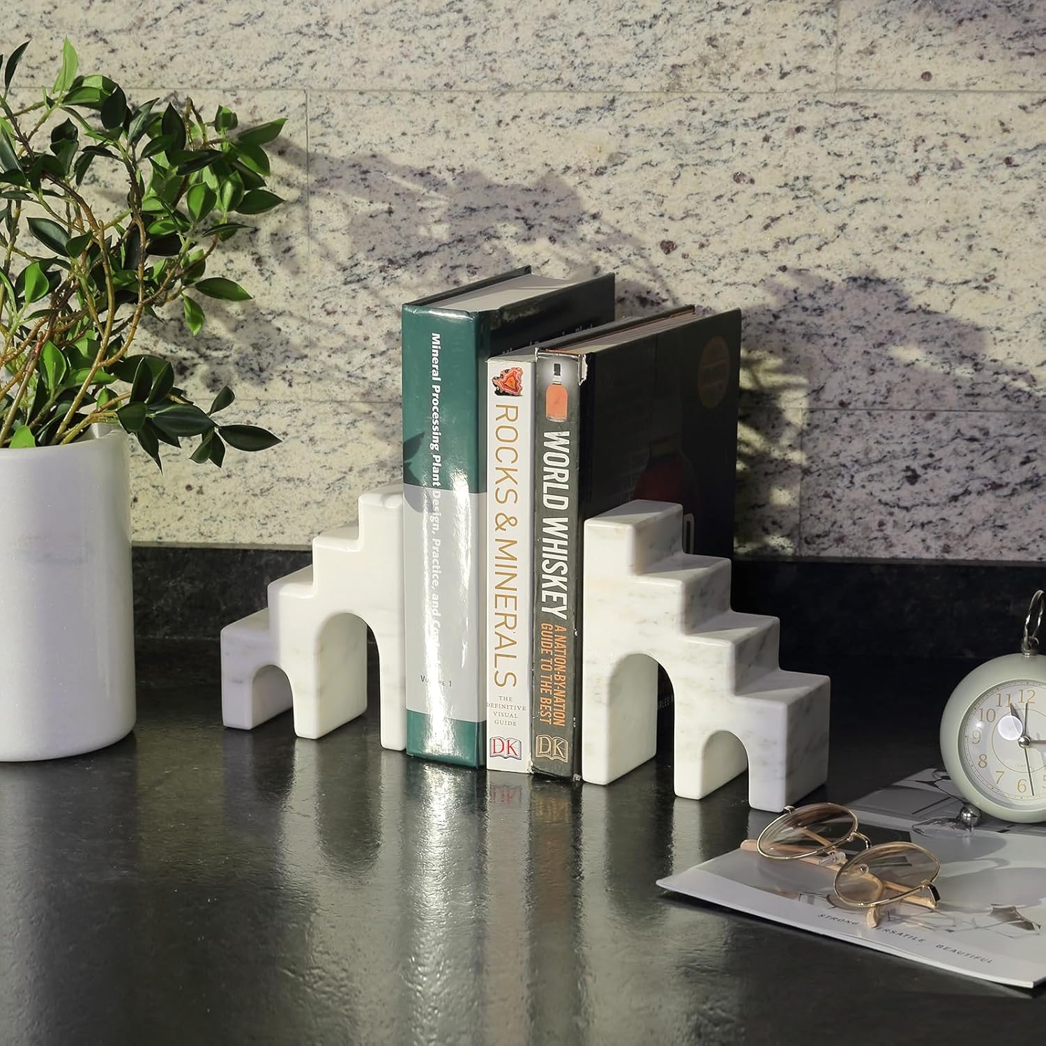 - Durable and Practical ---- The marble bookends are great for organizing your books, CDs, DVDs, and magazines, these book stoppers will make your reading time better and your bookshelf more tidy and organized. The aesthetic book ends also maintain long-term stability and will not be deformed by external factors, ensuring that your books are always securely placed.