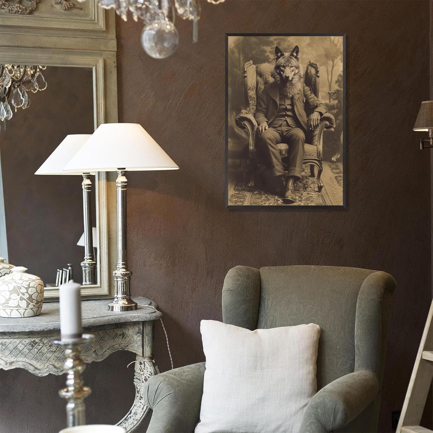 Werewolf Vintage Shoot Art Poster Print Canvas Wall Art Ideal for Dark Academia Gothic Occult Decor Living Room Bedroom Office Posters Decorations Creepy Picture 12X16inch Aluminum Framed