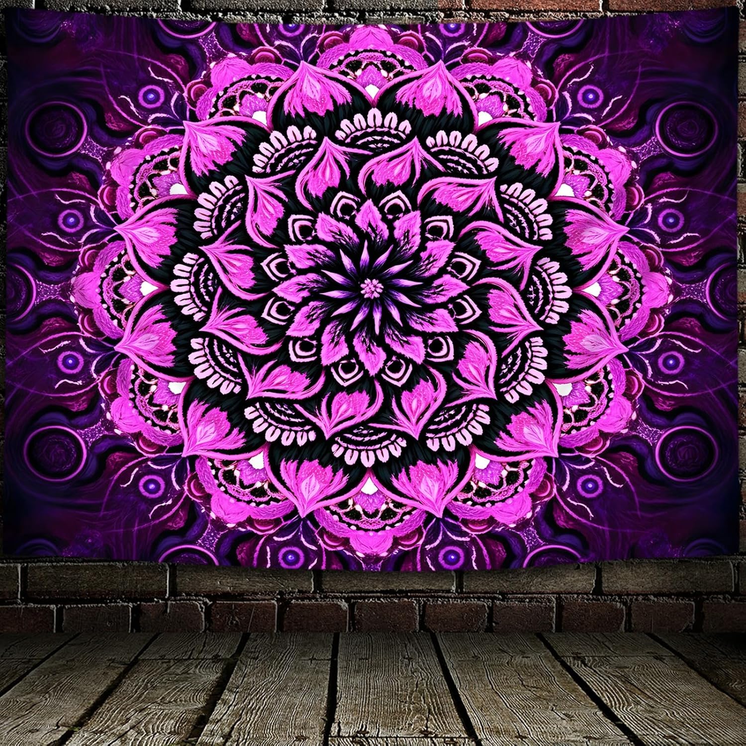 Psyhilar Blacklight Mandala Tapestry Wall Hanging, Psychedelic Flower Black Light Posters for Adults and Teens, UV Reactive Aesthetic Bohemian Art for Bedroom (40 x 30 Inches)