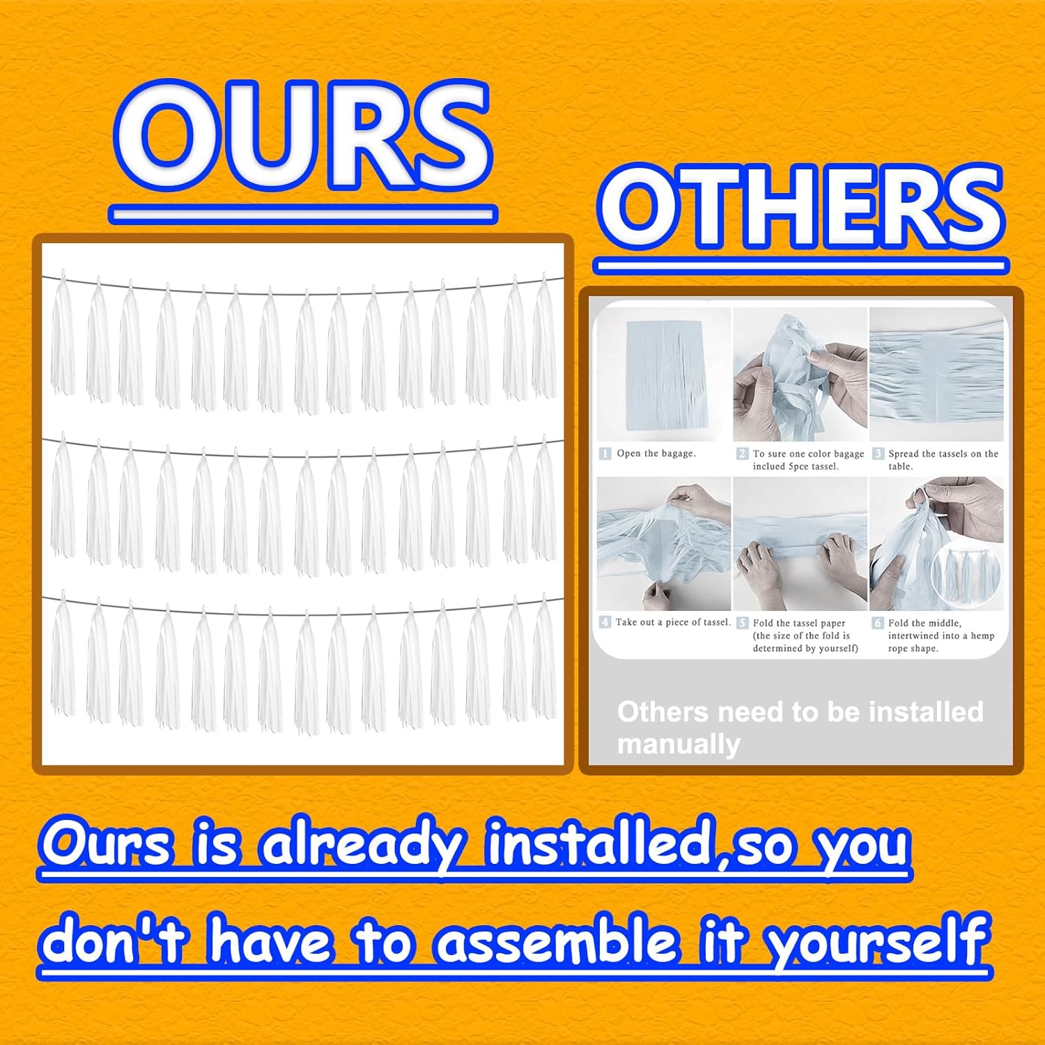- 【Easy to Use and Saving Time】: All 4 sets of tassel garland banner party decorations are pre-strung, which will save you the hassle of assembly. Tassels Streamers Banner is very easy to hang and decorate both indoors and outdoors, such as homes, nurseries, walls, bedrooms, dining rooms, ceilings, mantels, fireplaces, windows, gardens, schools, fences, restaurants, and bars. The ceiling creates a chic atmosphere that your guests will love!