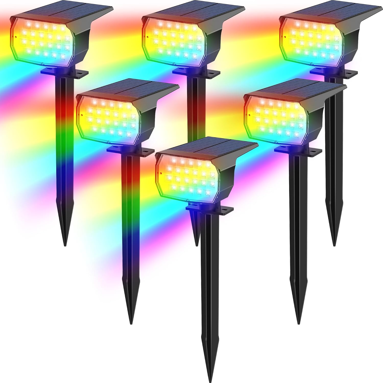 Solar Color Changing Spot Lights Outdoor Waterproof Colored RGB Solar Powered Landscape Lights for Yard 7 Lighting Modes Multicolor Solar Spotlights for Pathway Garden Outside (6 Pack)
