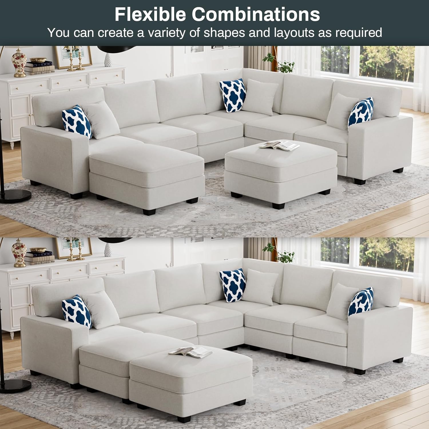 L Lengend Vansen Modular Sectional Sofa U Shaped Couch with Ottoman Modern Reversible Corner Sectional Couch for Living Room (Cream, U Shaped Sofa-3)