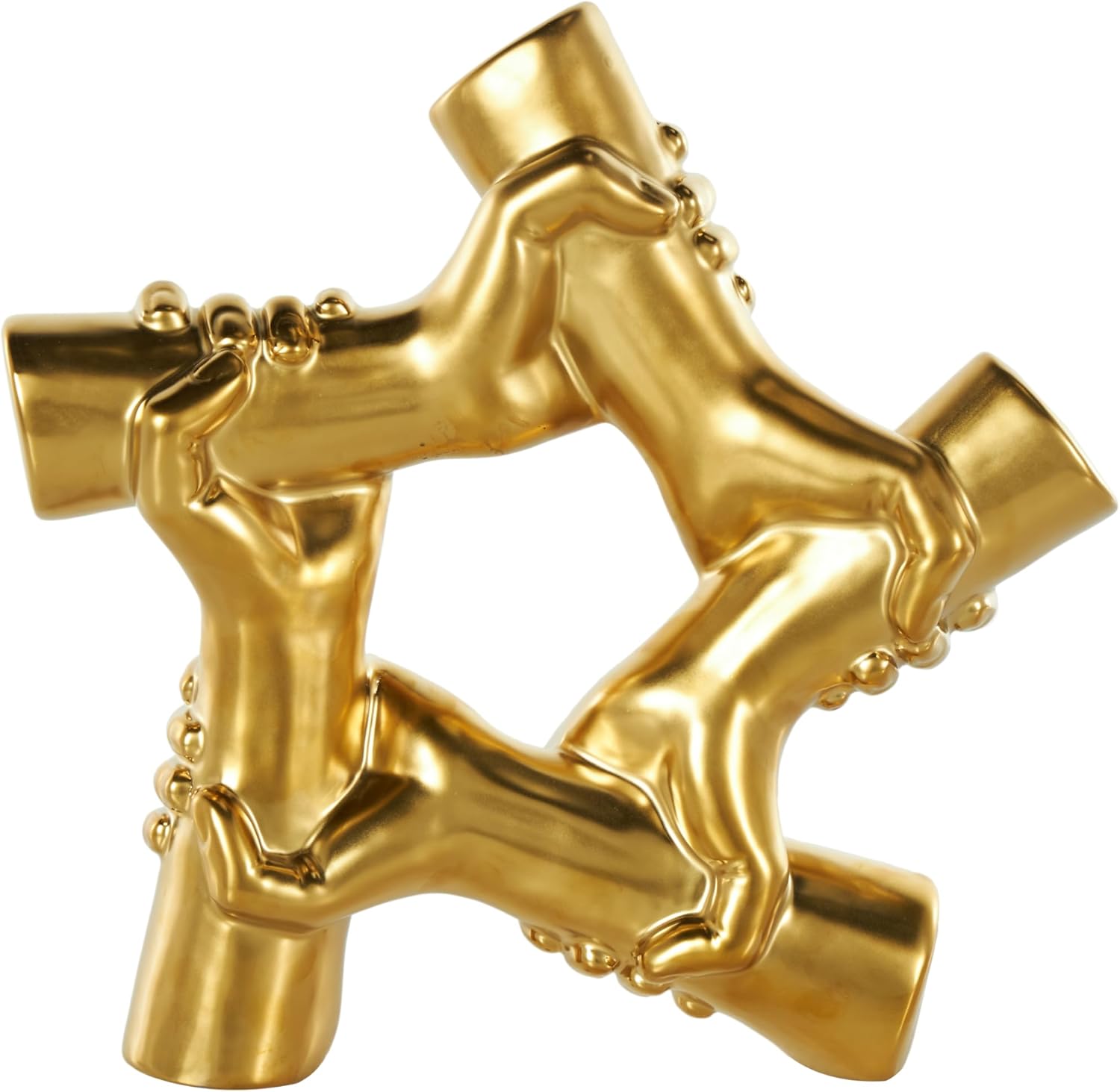 - HANDS TRIANGLE ACCENT STATUE: This ceramic statue features intricately detailed hands gripping together
