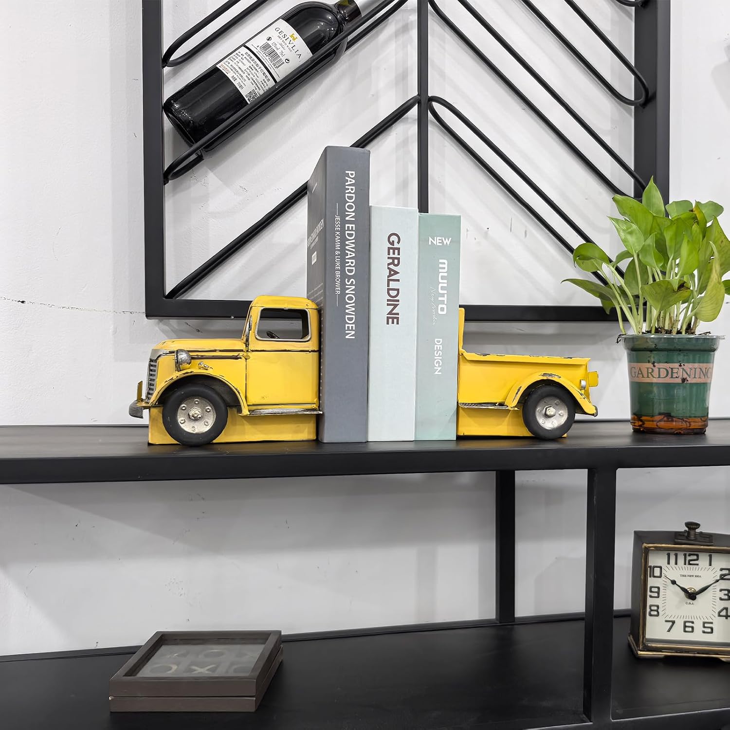 Decorative Book Ends Vintage Bookends: Metal Truck Book Stopper for Kid Books for Grandson Men Teen - Farmhouse Decor for Bookcase Shelf Table Coffee Bar Office Home Yellow