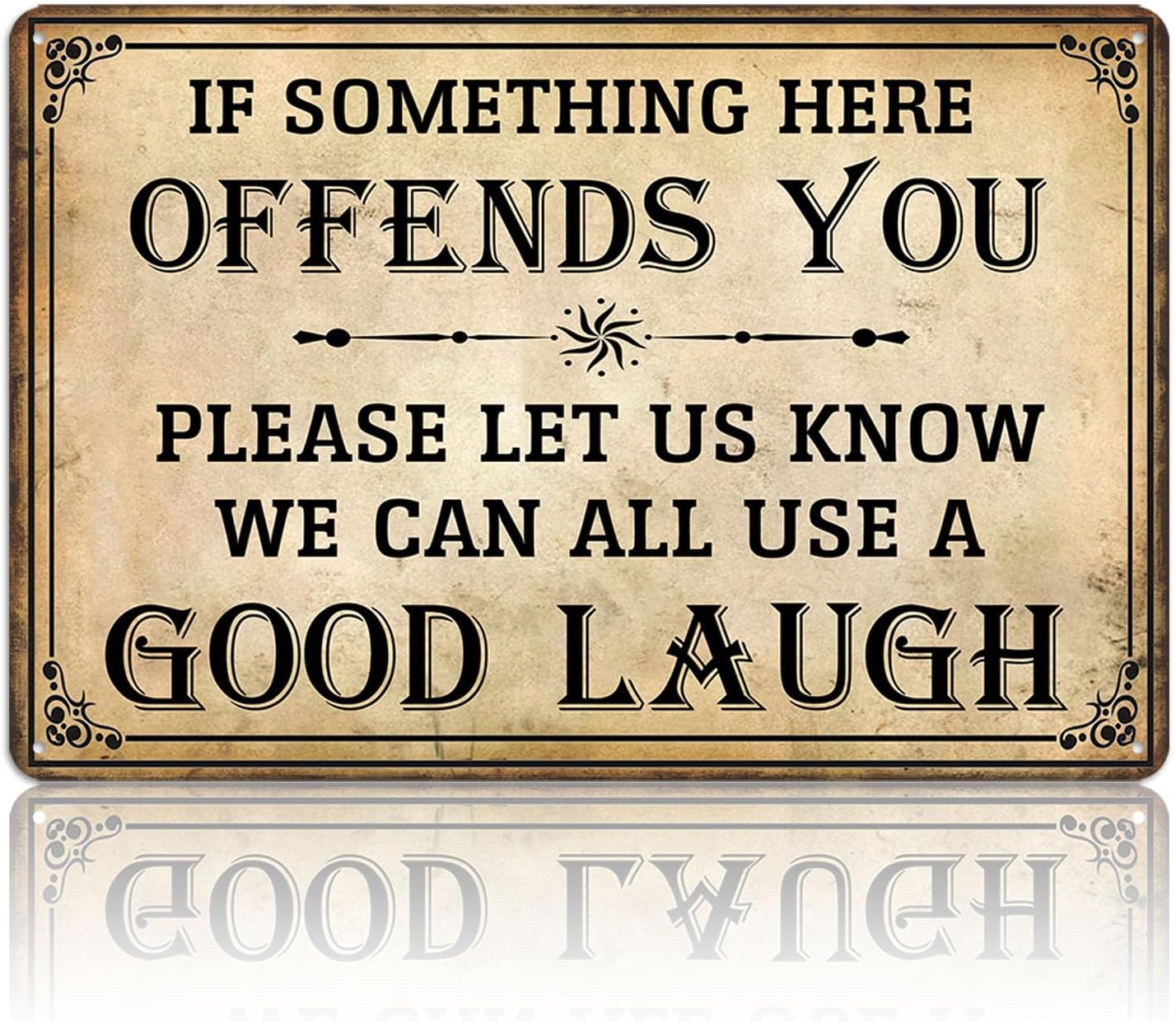 Bar Sign Man Cave Decor - Vintage Garage Metal Tin Signs for Men Funny If Something Here Offends You Poster Wall Art, Sports Bars Outdoor Accessories Decorations 8x12 Inch