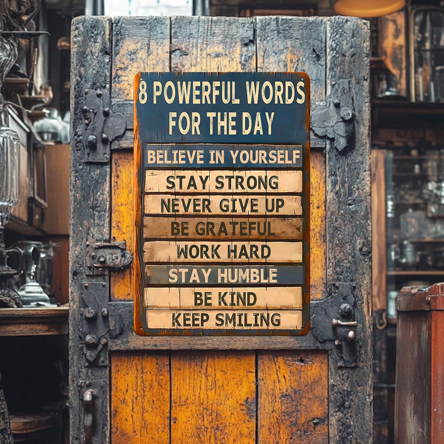 Motivational Metal Tin Sign - 8 Powerful Words for The Day Posters - Inspirational Wall Art Positive Quotes for Home Gym Office Classroom Decor Durable Rustic Wall Decor for Teens Adults 8x12 Inch