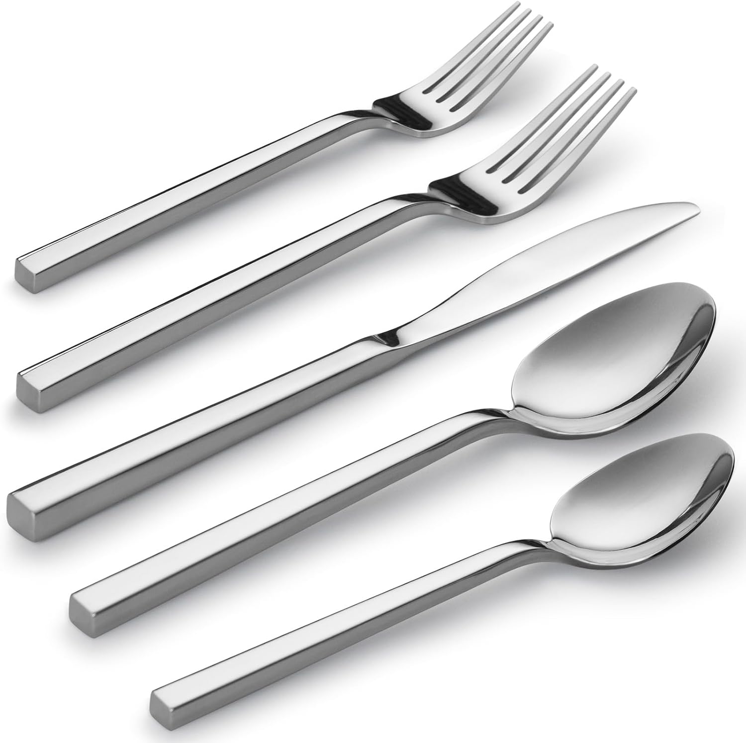 Alata Cube 40-Piece Forged Stainless Steel Flatware Set Cutlery Set, Silverware Set Service for 8, Mirror Finish, Dishwasher Safe