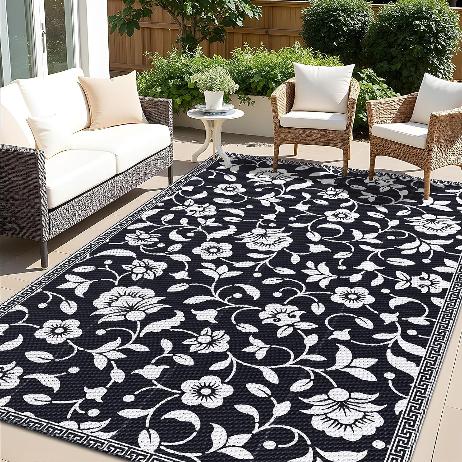 - Floral Aesthetic: Make a statement in your outdoor living space with this reversible patio rug, featuring a unique floral pattern. This plastic rug not only enhances the look of your area, but also creates an inviting atmosphere, transforming your space with both style and personality.
