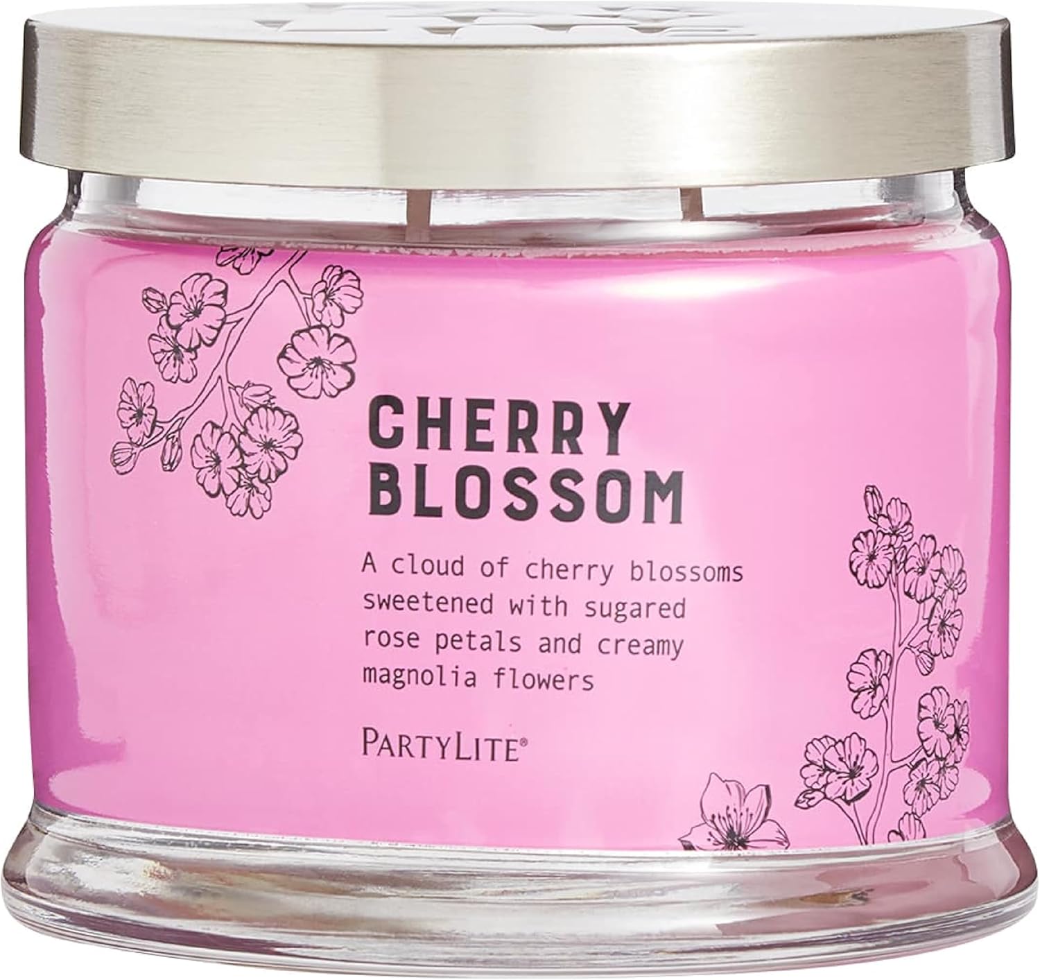 PartyLite 3-Wick Jar Candle, Highly Fragranced Clean Burning Glass Candle, 25-45 Hours Burn Time (Cherry Blossom)