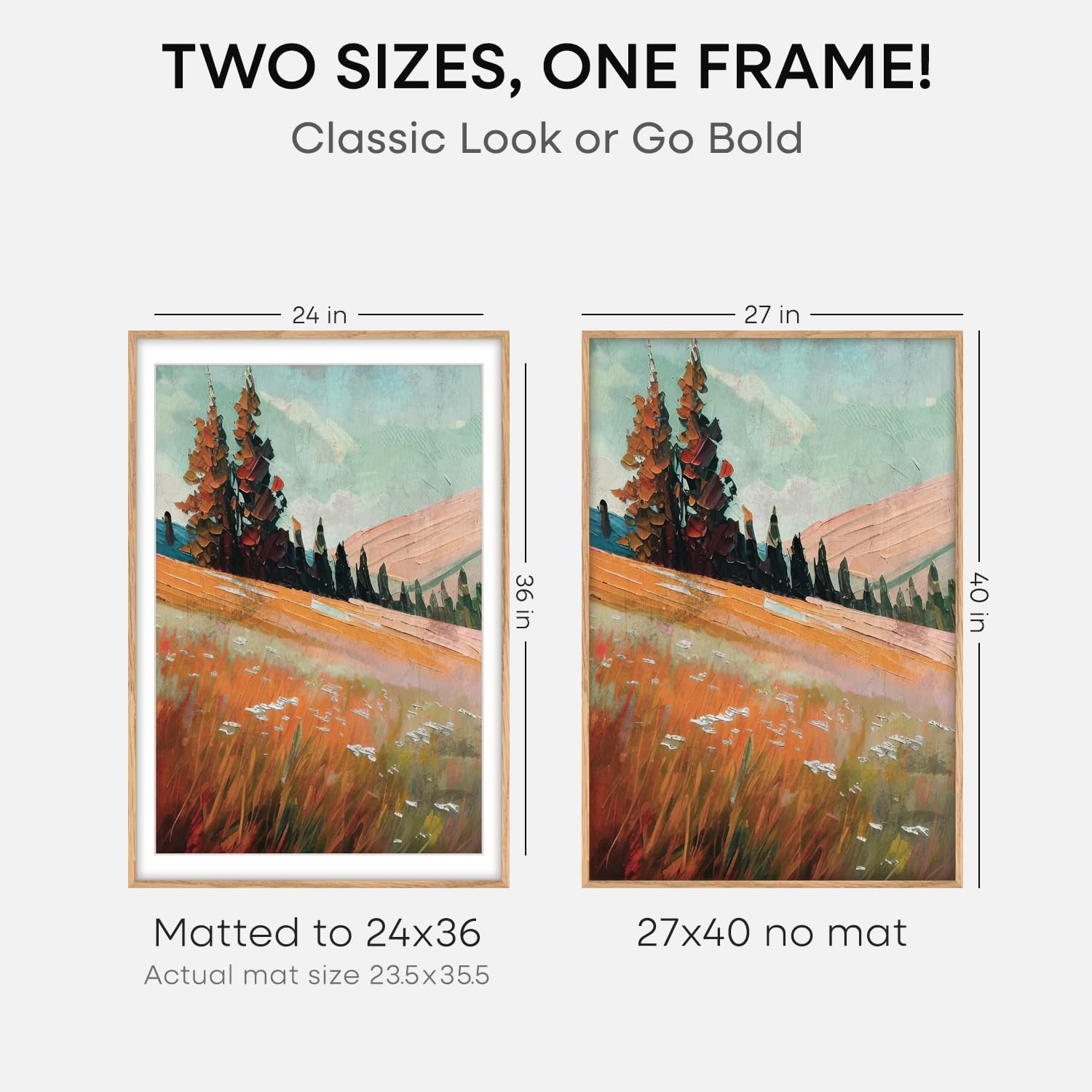- MATTED OR EDGE-TO-EDGEâYOUR CALL. A crisp 24x36 white mat creates negative space, elevating your image with gallery precision. Or remove it for 27x40 bold, uninterrupted impact.
