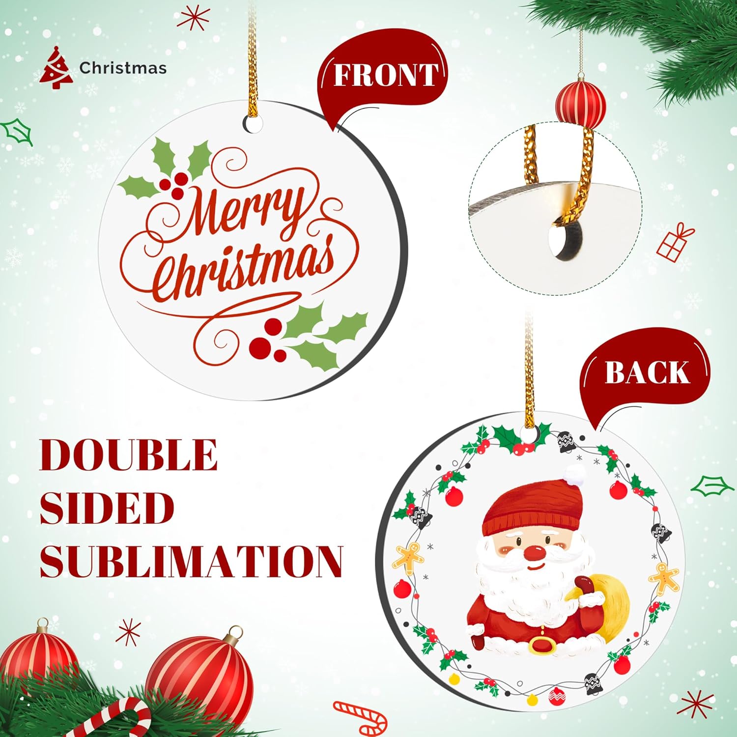- Double-Sided Sublimation: Our white sublimation christmas ornament blanks are coated with sublimation material on both sides, allowing you to print your desired pattern on either side for more creative possibilities
