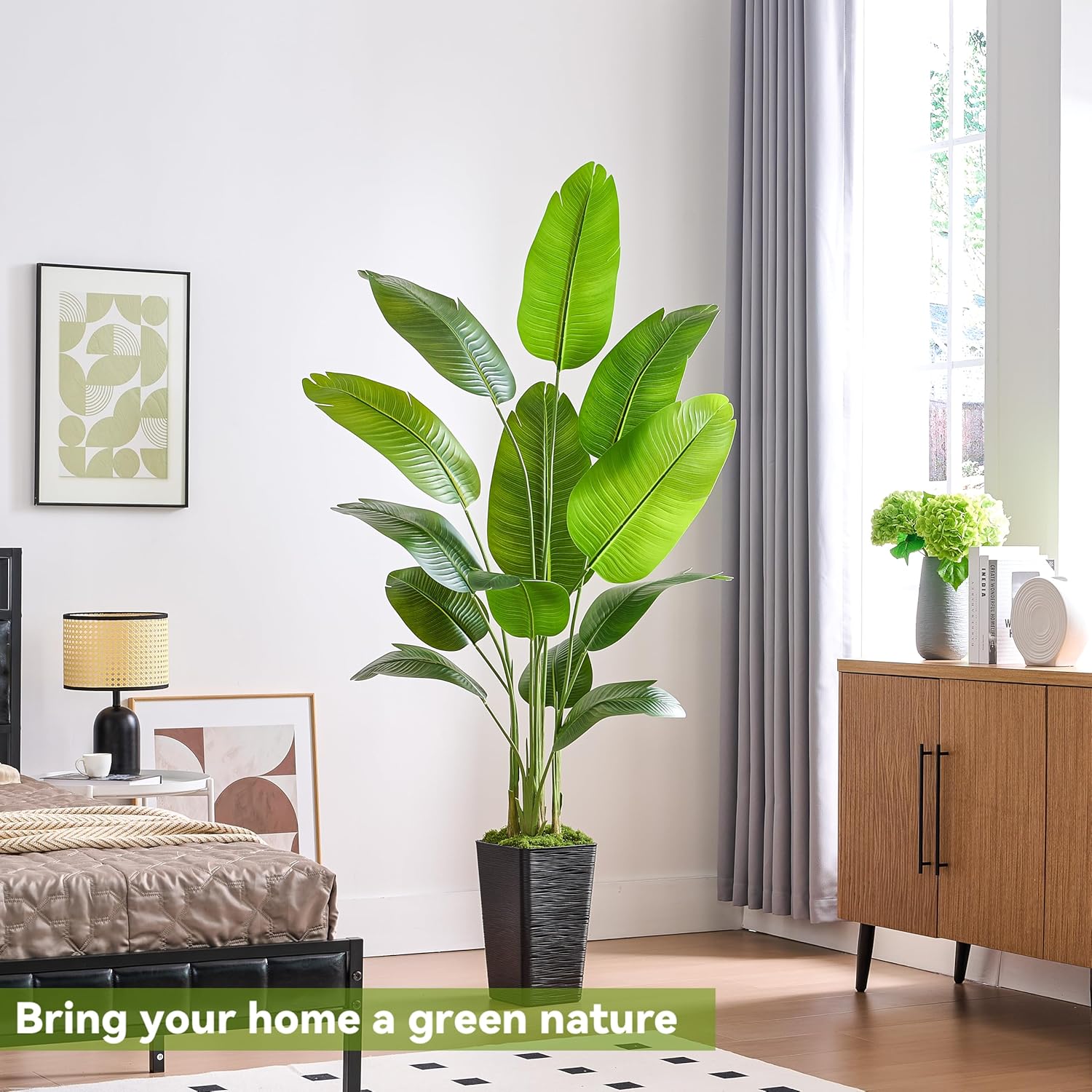 - Artificial Bird of Paradise Plant: Our artificial traveler's banana tree, inspired by the beauty of paradise bird plants, brings a touch of exotic elegance to any space with its lifelike appearance.