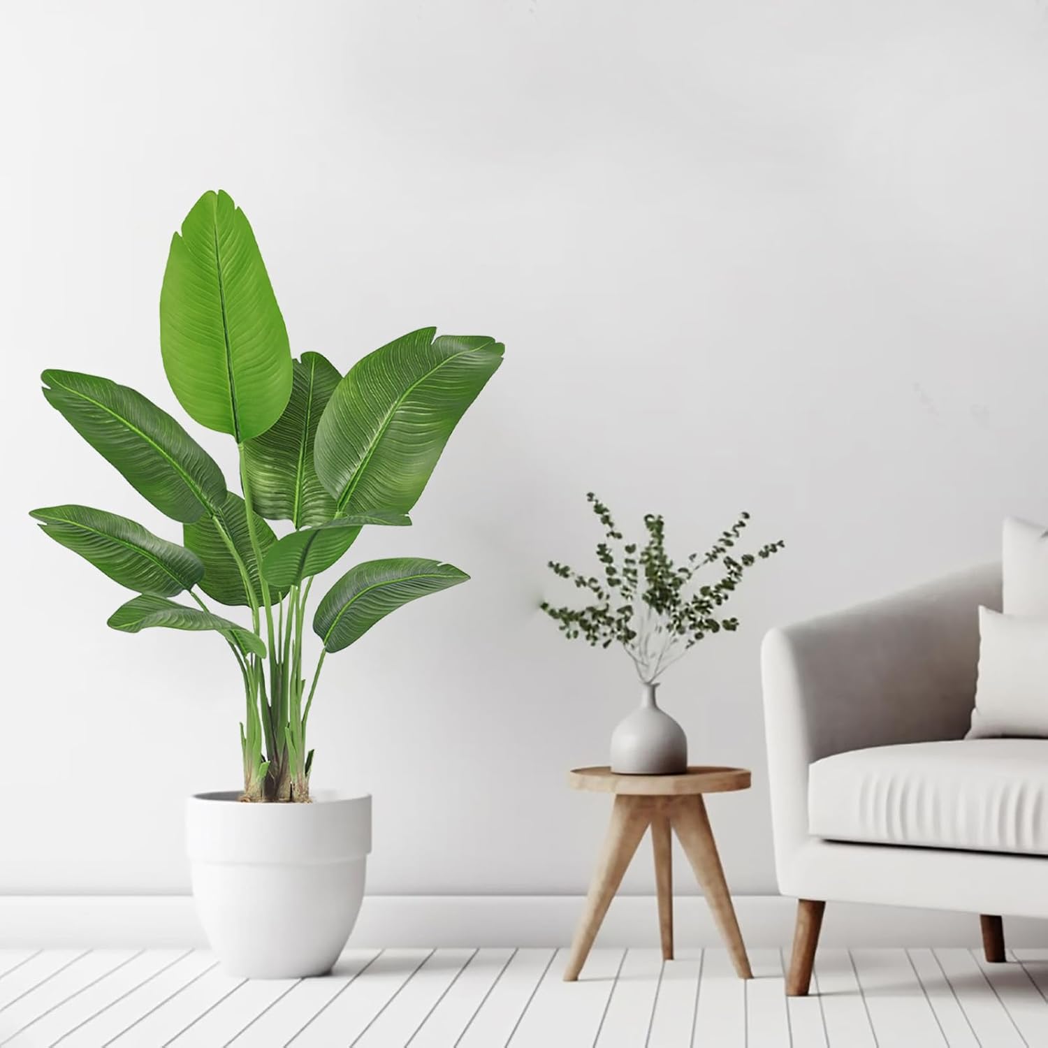 Lifelike Bird of Paradise Silk Artificial Plant Faux Banana Leaf Tree for Home Decor - Perfect Indoor Floor Plant with 9 Trunks (1, Black Planter, 4 FT)