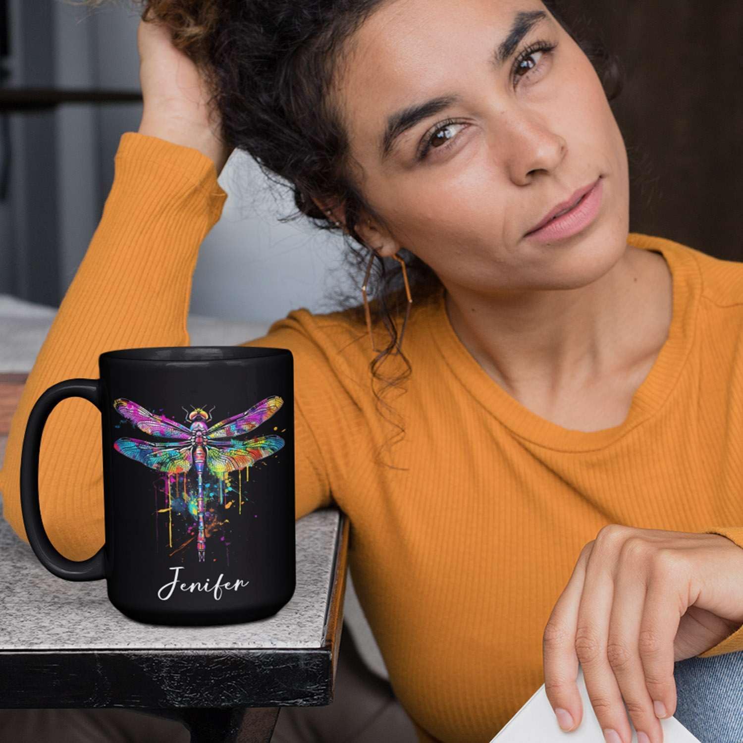 - π NOVELTY DESIGN MUG: Celebrate special moments with this Colorful Dragonfly Ceramic Cup, personalized with a name for a good touch. Ideal mug gift for your son or daughter, this custom dragonfly coffee mug is available in 11oz and 15oz sizes. Click 'Customize Now' to create a thoughtful and personalized mug gift that any dragonfly lover will cherish.