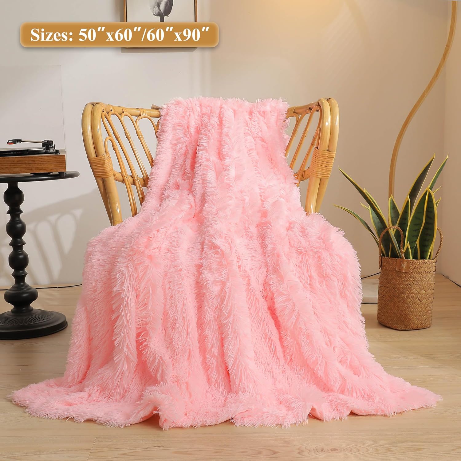 XeGe Luxury Faux Fur Blanket, Pink Soft Big Fluffy Throw, Shaggy Plush Decorative Cute Girls Furry Bed Throw, Fuzzy Blanket for Couch Bedroom Living Room, Pink, 60x90