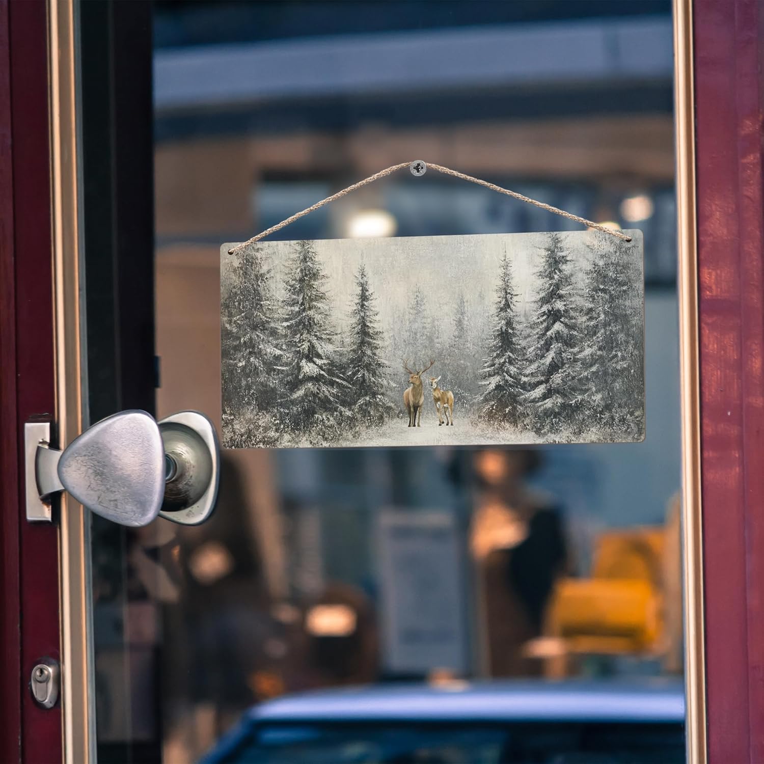 Winter Pine Tree Deer Wooden Sign, 12x6 inches, Rustic Wall Decor for Home, Office or Gifting