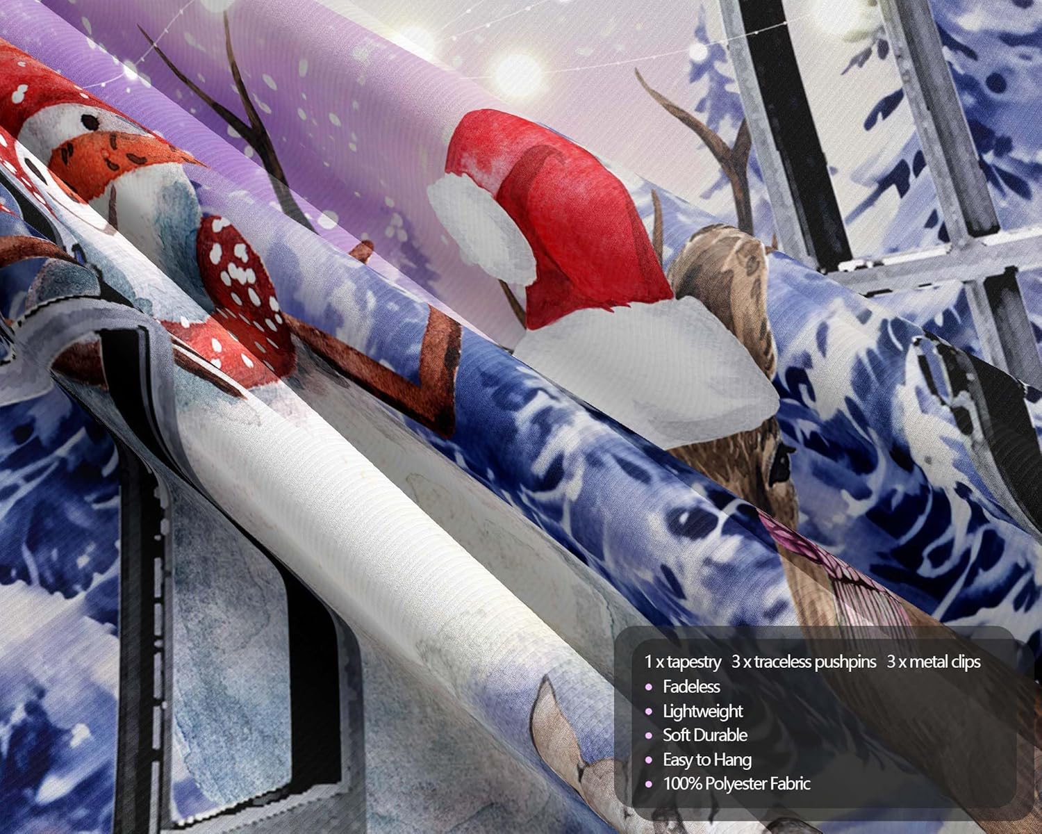 QGHOT Christmas Window Tapestry Wall Hanging Christmas Backdrop Winter Window Wall Decor Xmas Snowman Deer Tapestries for Bedroom Living Room Dorm Holiday Party Decoration