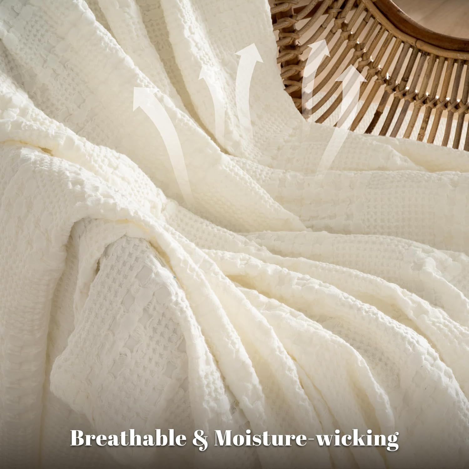 - Exquisite Waffle Weave Design: This classic and stylish waffle design boasts a three-dimensional, puffy, and elegant appearance, crafted with precision in every stitch, showcasing exquisite woven craftsmanship. The special waffle fabric promotes air circulation, temperature regulation, and moisture absorption for ultimate comfort. In addition, this stylish and sophisticated blanket, adding a touch of elegance to any room.