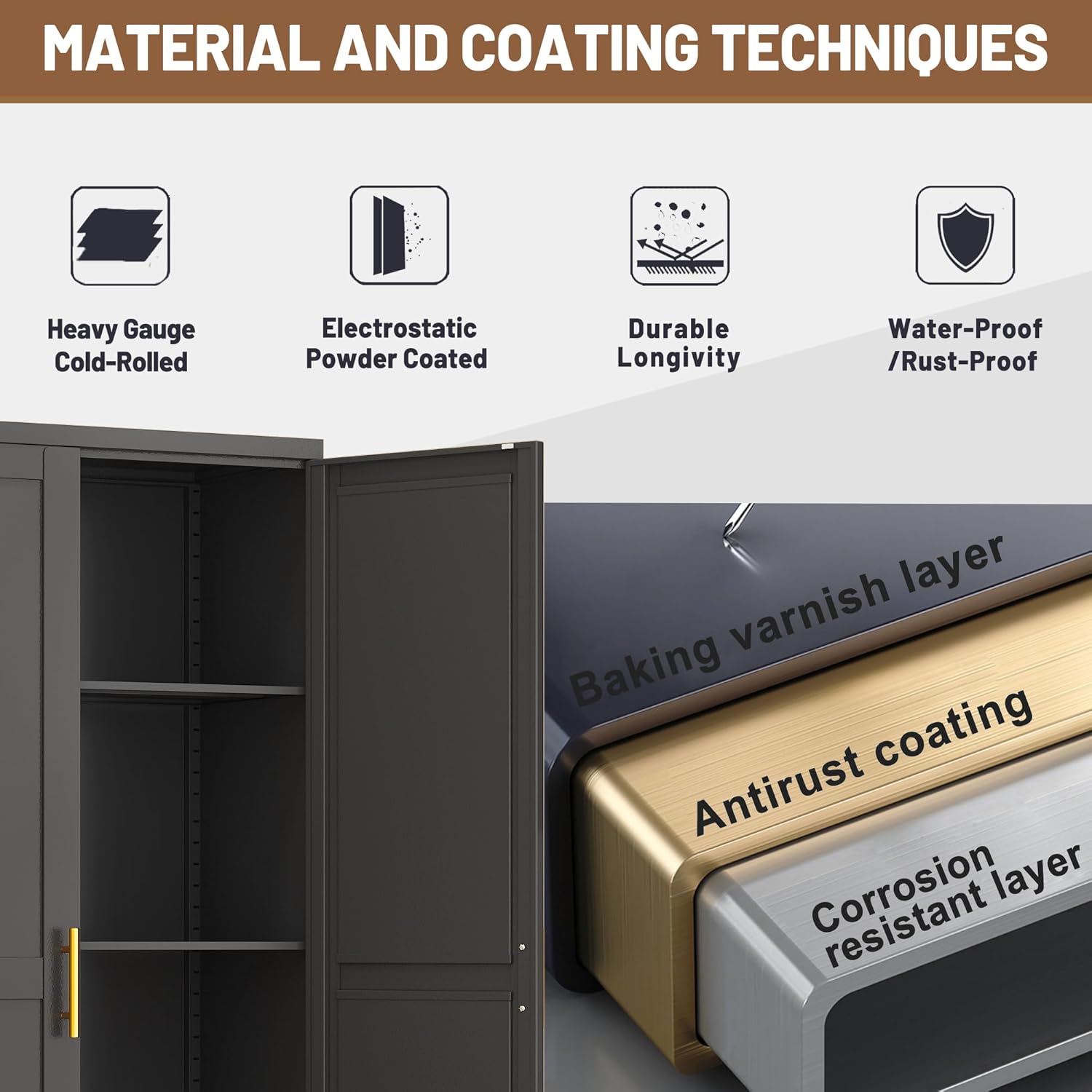 - High-quality Metal Construction: Our storage cabinet is made of premium metal materials, ensuring durability and sturdiness. With its sturdy construction, you can rely on this cabinet to securely store your items.