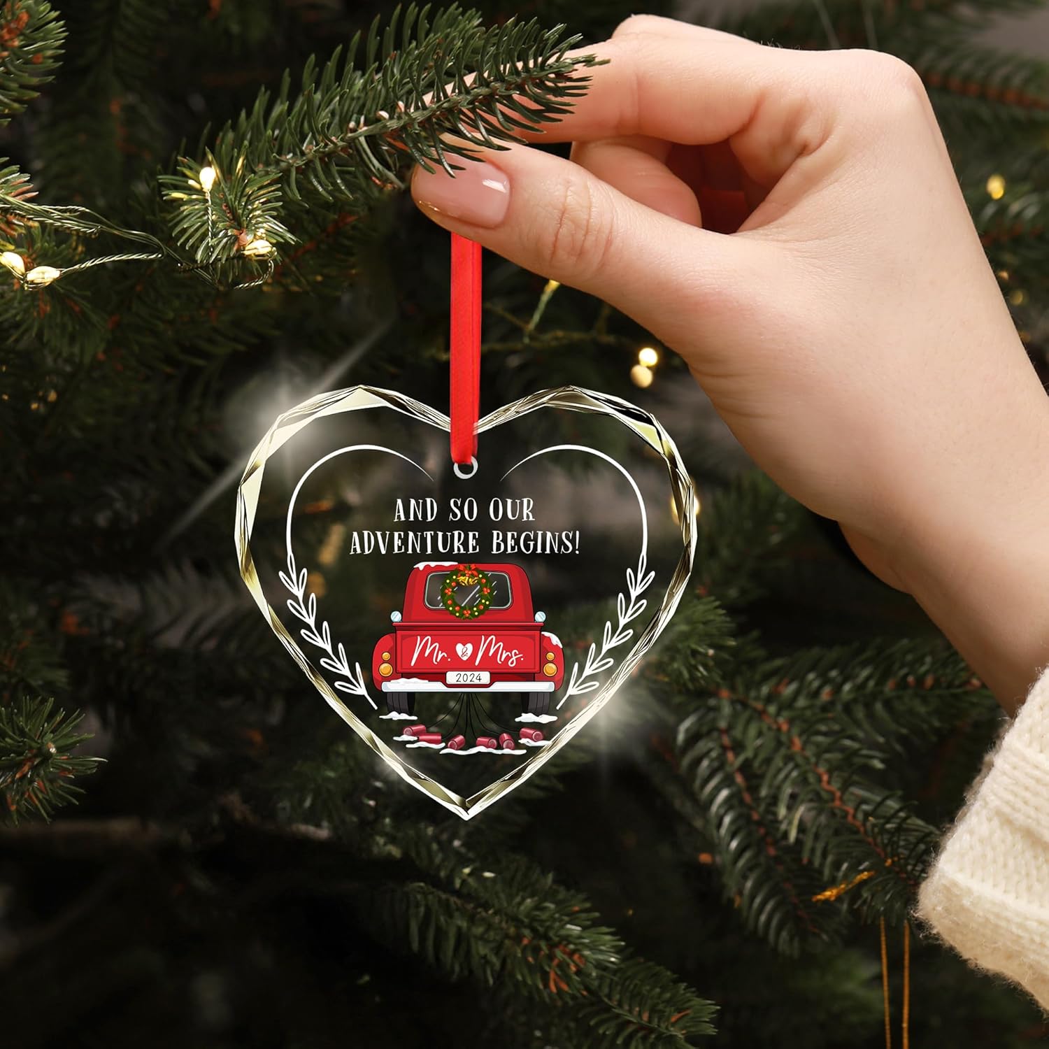 Teezwonder Mr & Mrs Gifts - Christmas Ornaments 2024, Wedding & Engagement Gifts for Couples - Glass Ornaments