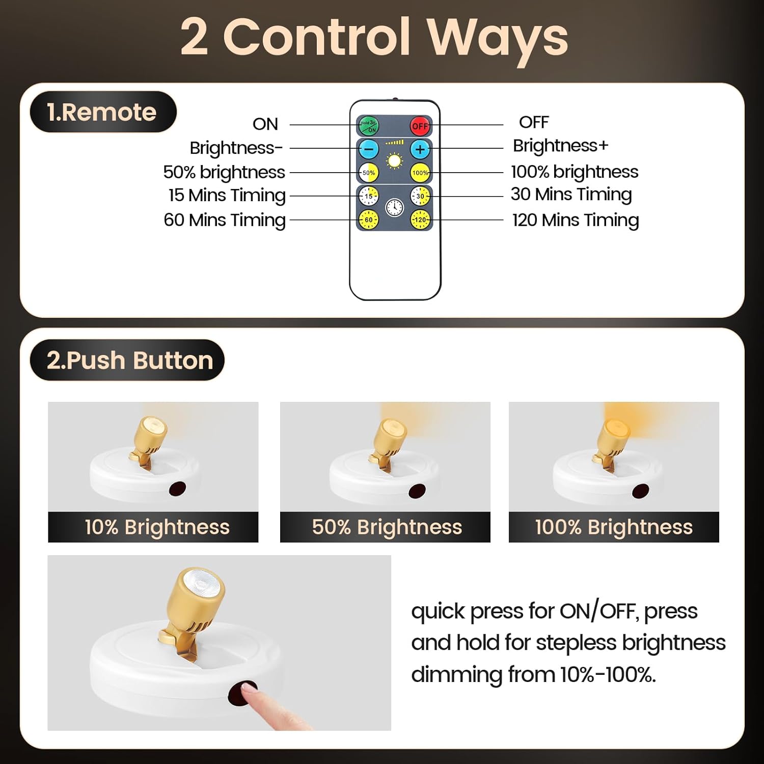 Rechargeable Spotlight, Battery Operated Picture Lights with Remote, Cordless Plant Spot Light Indoor, LED Accent Lighting, Dimmable Uplight for Tree Painting Artwork Photo Dartboard Decor