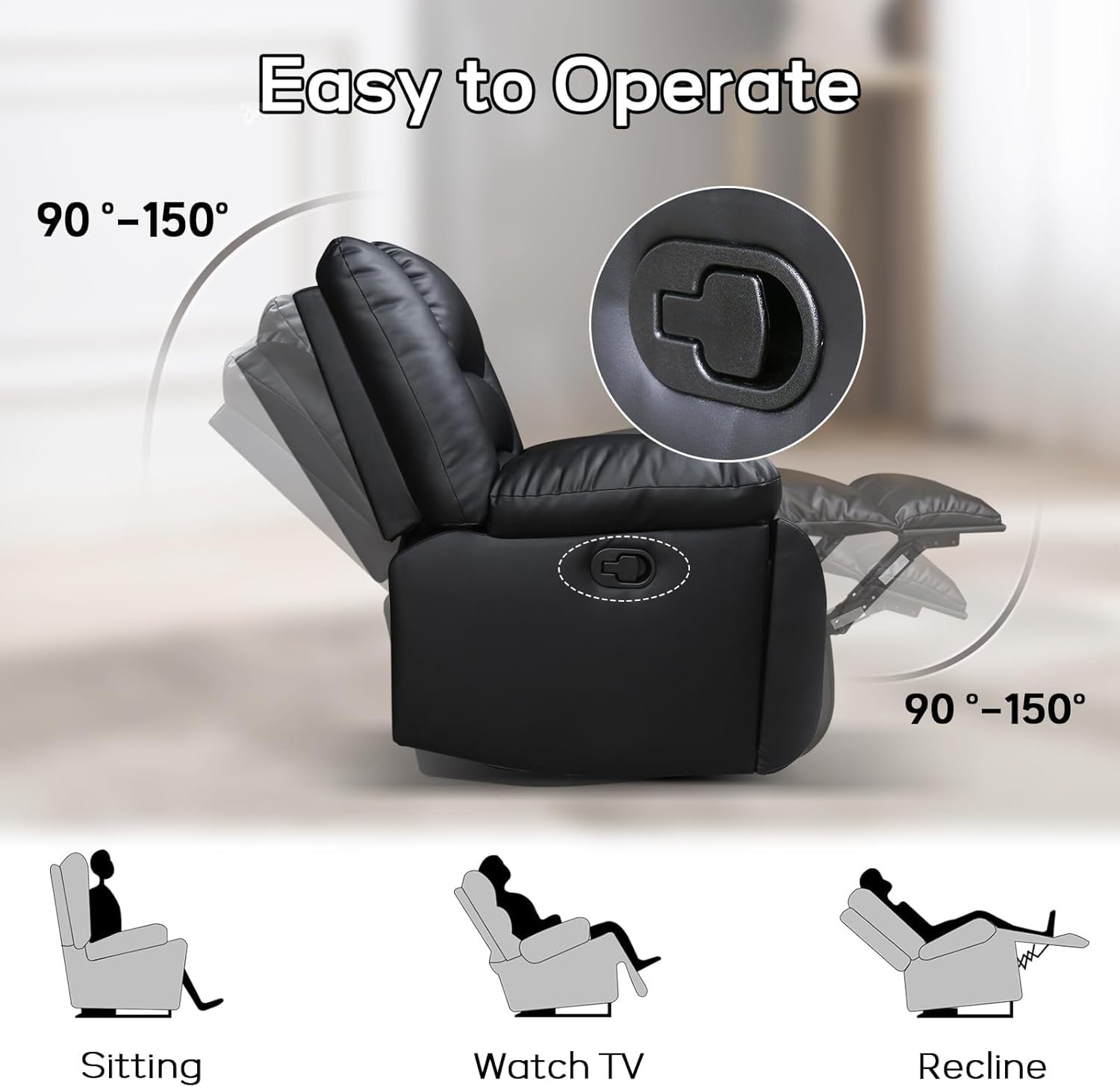 - 【Premium Faux Leather Upholstery】The EBELLO recliner is expertly upholstered in high-quality faux leather, designed to mimic the texture and appearance of genuine leather. Not only does it provide a luxurious aesthetic, but it also offers ease of maintenance.