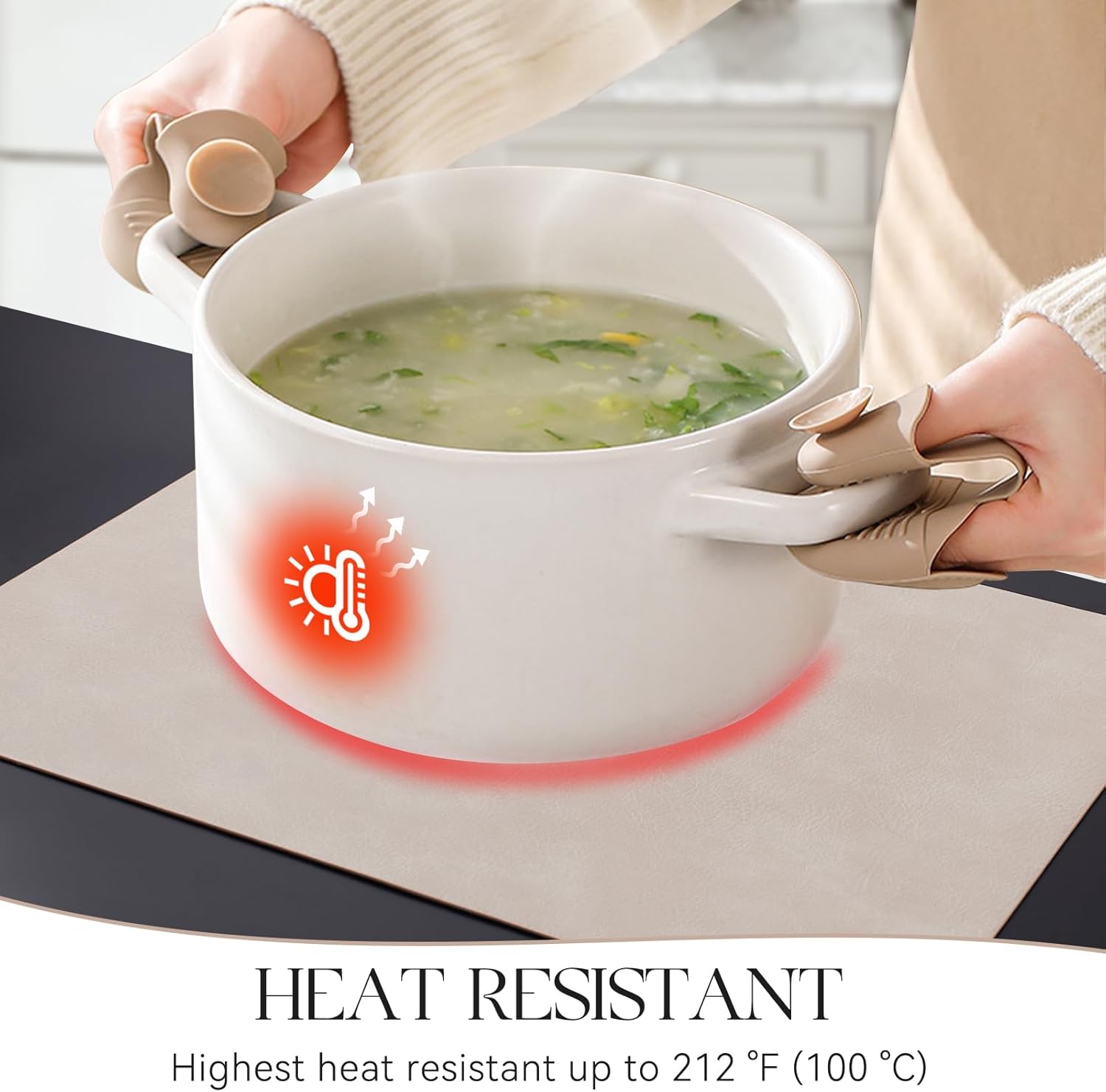 - PROTECT YOUR TABLE: Our placemats are 2mm thick and heat-resistant up to 212β/100β, which can protect your table from high temperatures and reduces noise from plates and flatware. It is an excellent choice to protect protect the surface of your dining table from hot dishes and liquid spills.