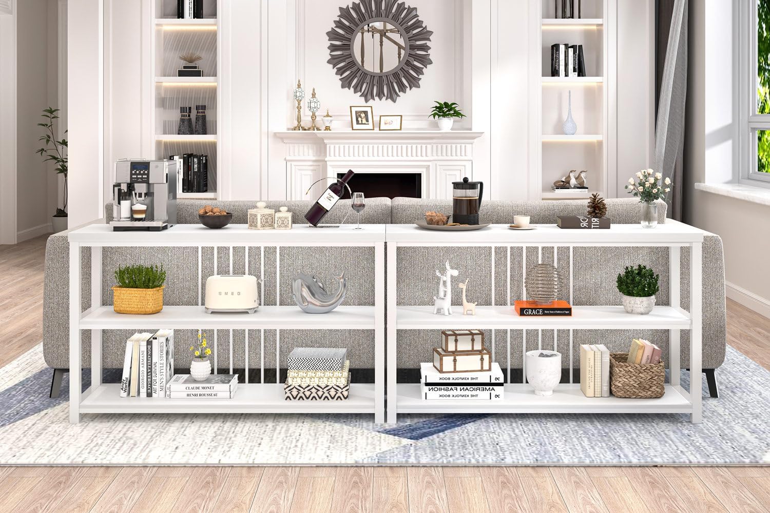 - Versatile: Console tables for entryway, doubling as display, entry way, TV console, behind couch table, foyer, window table, sofa bar table or open storage shelves for living room, office, dining room, bedroom, hallway. Marrying functionality with style