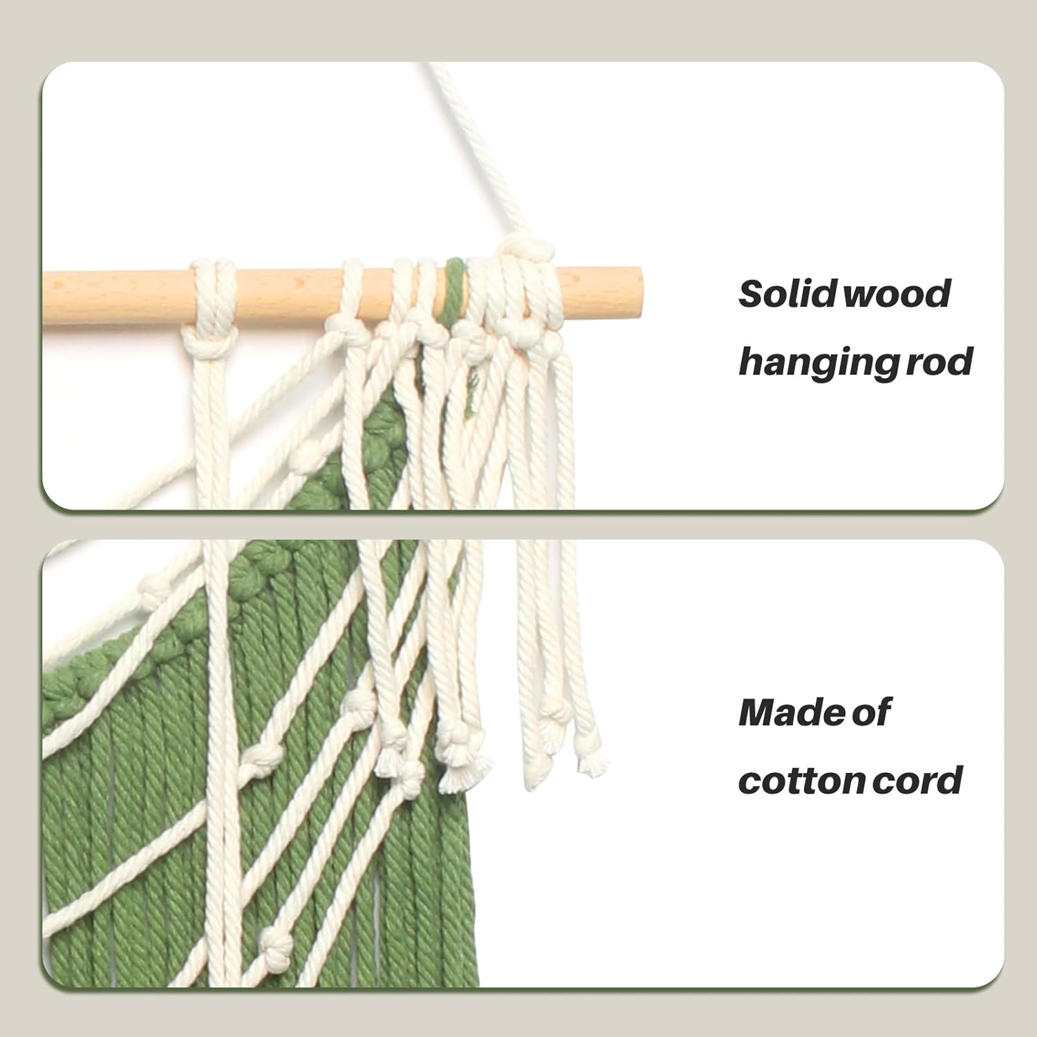 - Easy To Hang: Our macrame decor comes with a wooden rod and pre-attached tassels, All you need is a hook making it easy to hang on any wall.