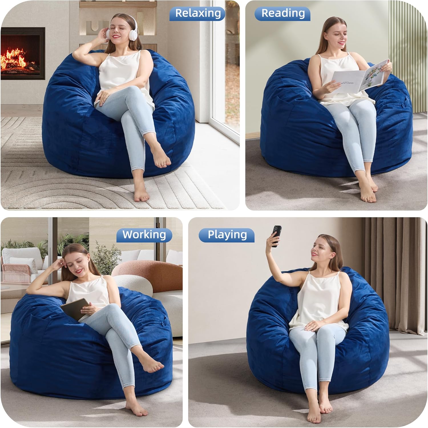 - Versatile Usage: Beanbag chair is the ideal addition to your dorm rooms, living room, bedroom, etc. You can move bean bag chairs with ease, making them ideal for movie night, game night, and reading.