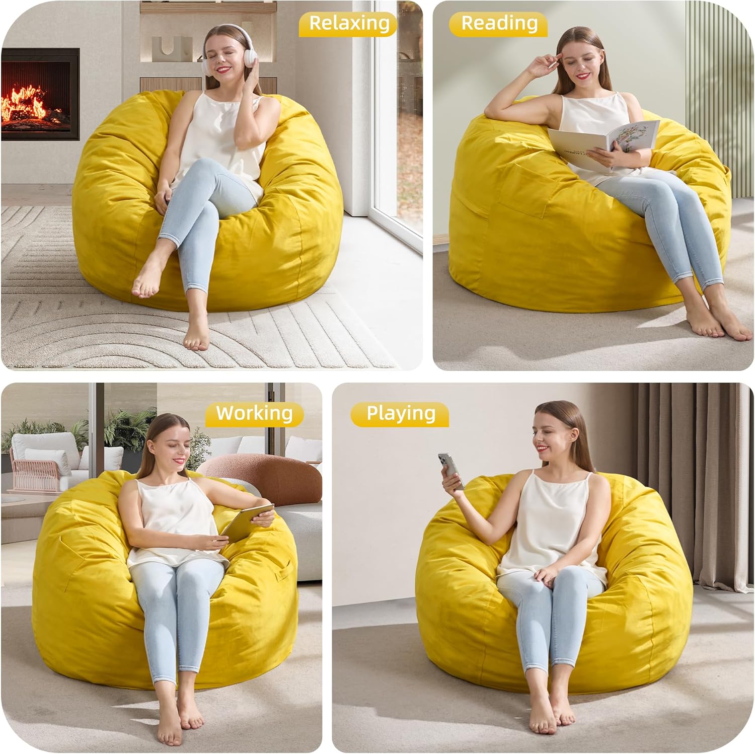 - Versatile Usage: Beanbag chair is the ideal addition to your dorm rooms, living room, bedroom, etc. You can move bean bag chairs with ease, making them ideal for movie night, game night, and reading.