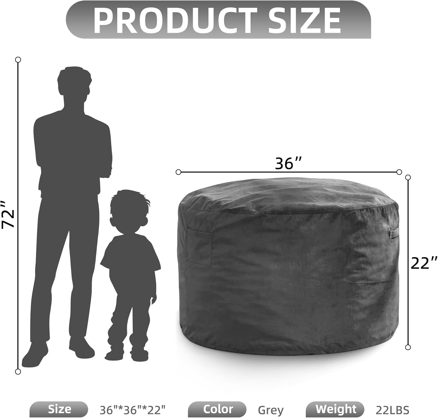 - Convenient Design: Our adult bean bag chair is designed with handle so you can move the giant bean bag chair wherever you want. The adult bean bag chair has a medium sized pocket on the side to store your phone, remote control, books and some small items. With the hidden zipper, you can remove the bean bag cover and throw it in the washing machine for cleaning.