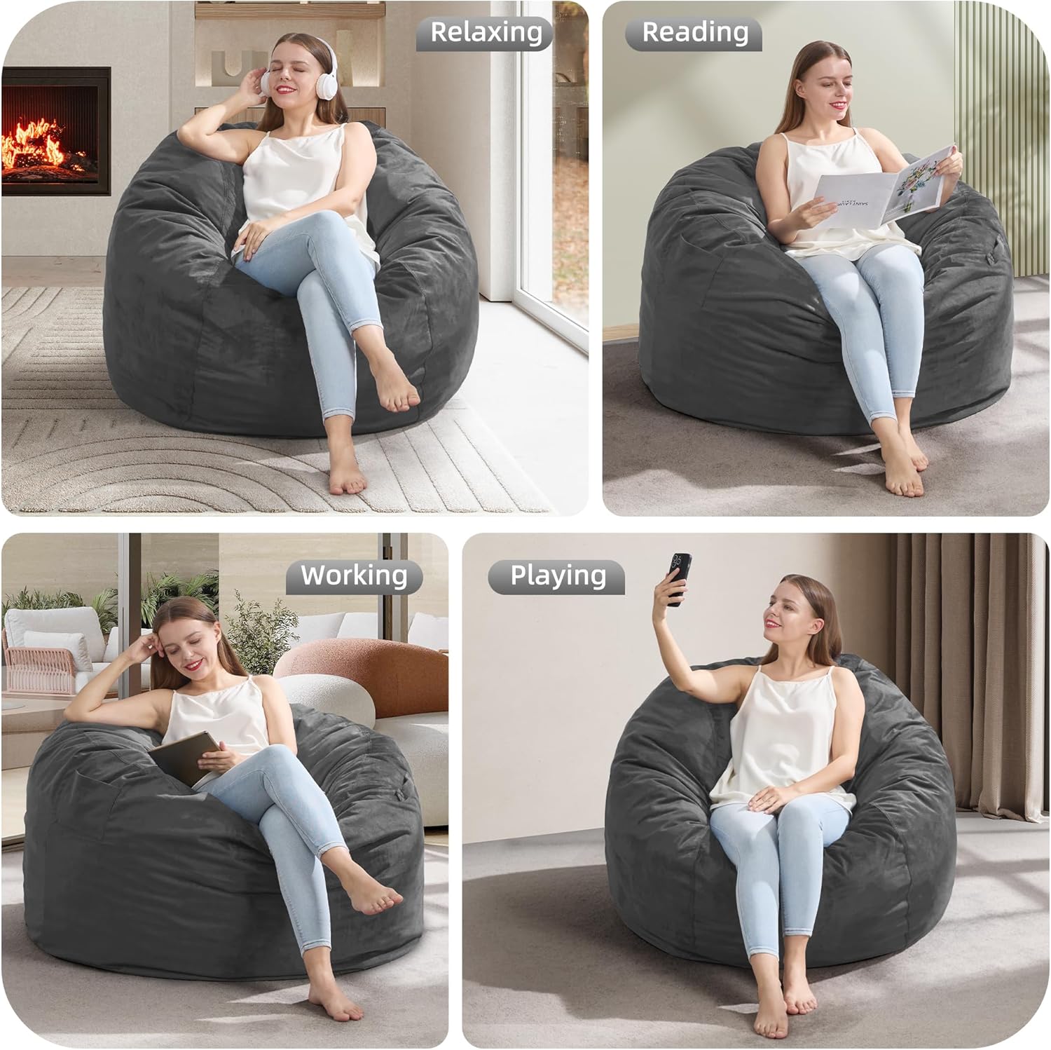 - Versatile Usage: Beanbag chair is the ideal addition to your dorm rooms, living room, bedroom, etc. You can move bean bag chairs with ease, making them ideal for movie night, game night, and reading.
