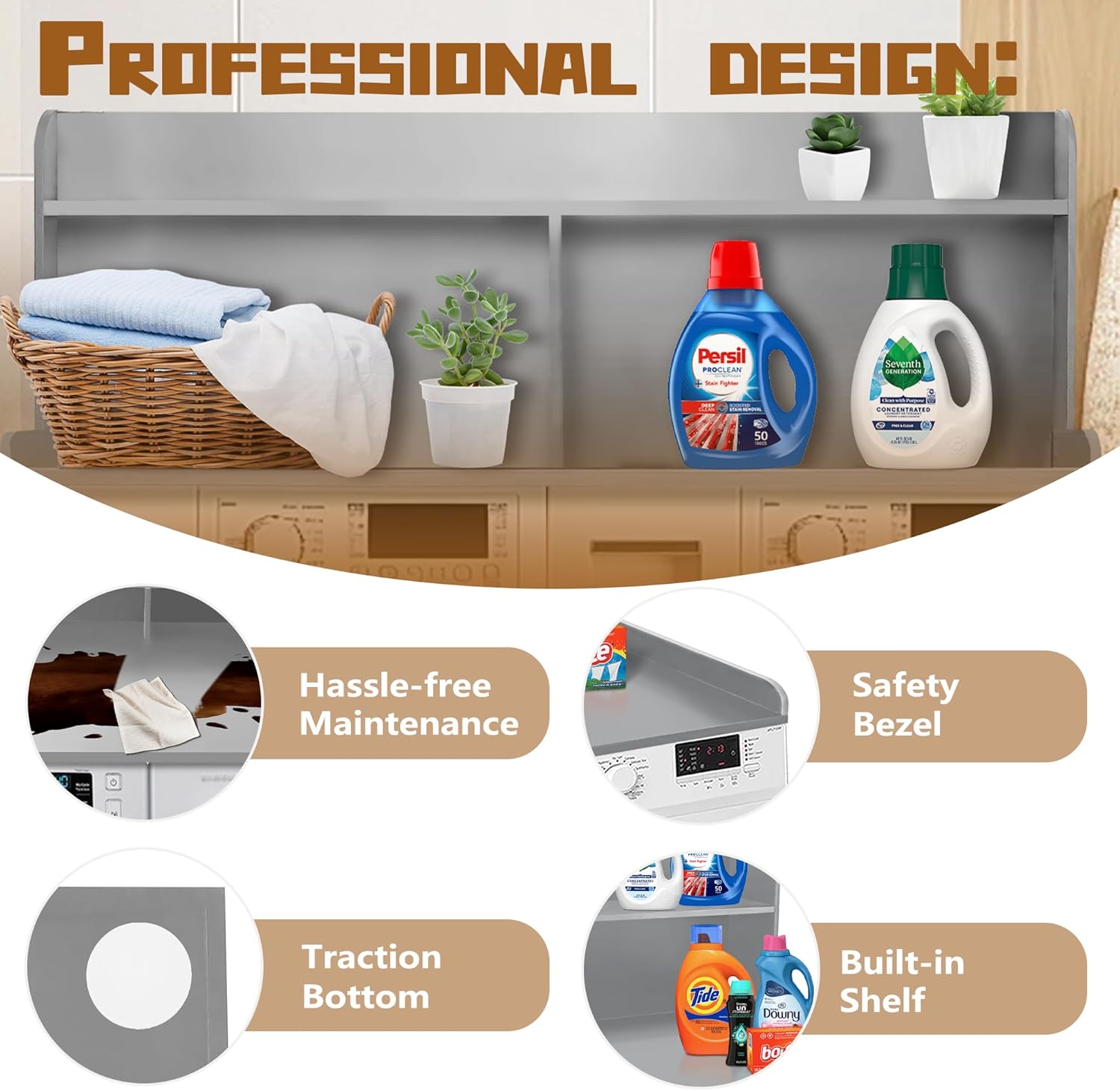 - 【Versatile and Efficient Storage Solution】Beyond serving as a base for your washer and dryer, this countertop offers exceptional storage capabilities. Its generous surface is perfect for organizing laundry essentials and functions as a convenient sorting station or even a temporary workspace. This versatile design adapts to your needs, making it an indispensable asset in your laundry room.