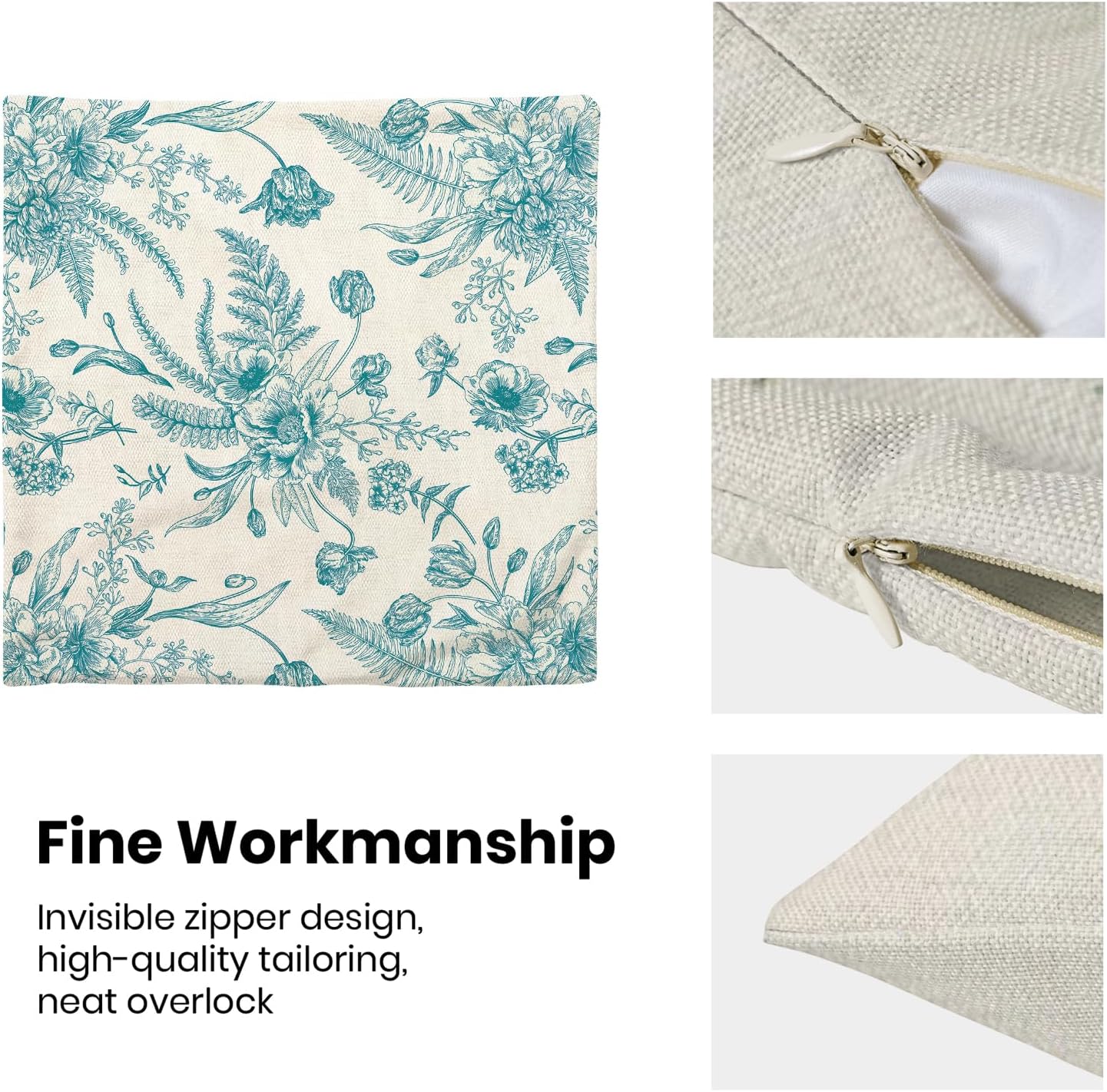 - 【Spring Pillow Covers】 Our Chinoiserie floral throw pillow covers 18x18 inch are made of excellent breathable polyester cotton fabric. The teal and White floral decorative pillow covers is sturdy, soft and skin-friendly. The plant outdoor pillow covers adopt exquisite edging technology and four sides of our floral pillow covers are sewn firmly, which is not easy to open the line.