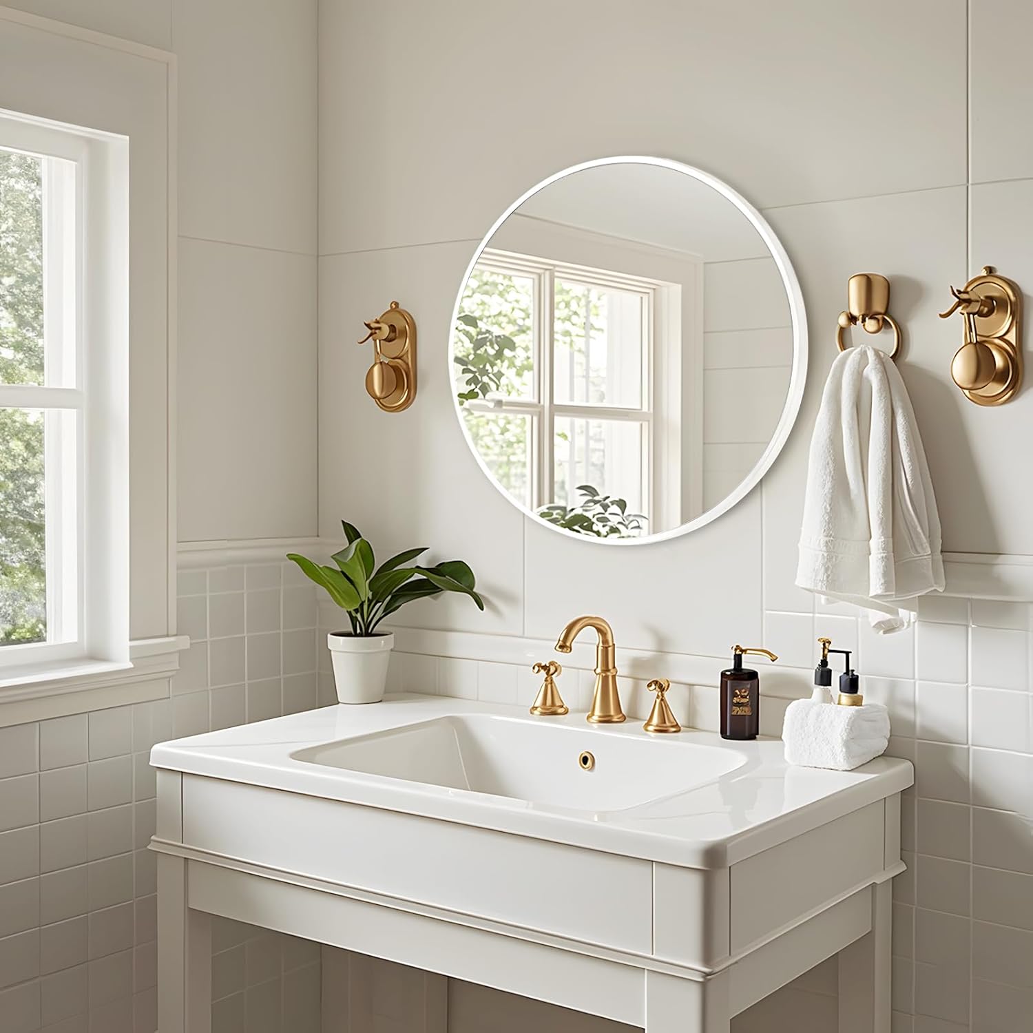 Fabuday White Round Mirror for Wall 20 inch - Circle Mirror for Bathroom, Entryway, Living Room, Hallway, Bedroom Decor, Small Matte Frame Mirrors
