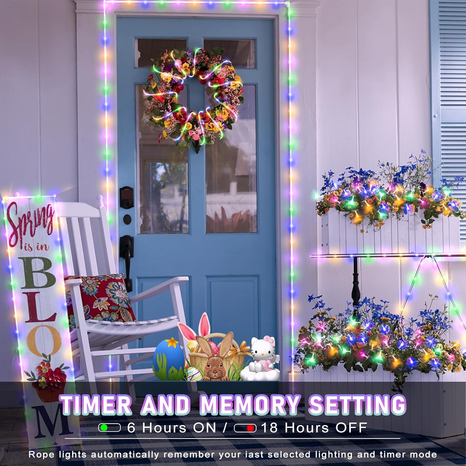 - ăIP65 Waterproof ă- IP65 Waterproof design, they are suitable for all weather use, remaining bright and sparkling even during strong rain and windy days. The outdoor rope lights is ideal for year-round outdoor decor and can illuminate gazebos, canopy, corridors, gardens, and patios. But please note the plug is not waterproof.