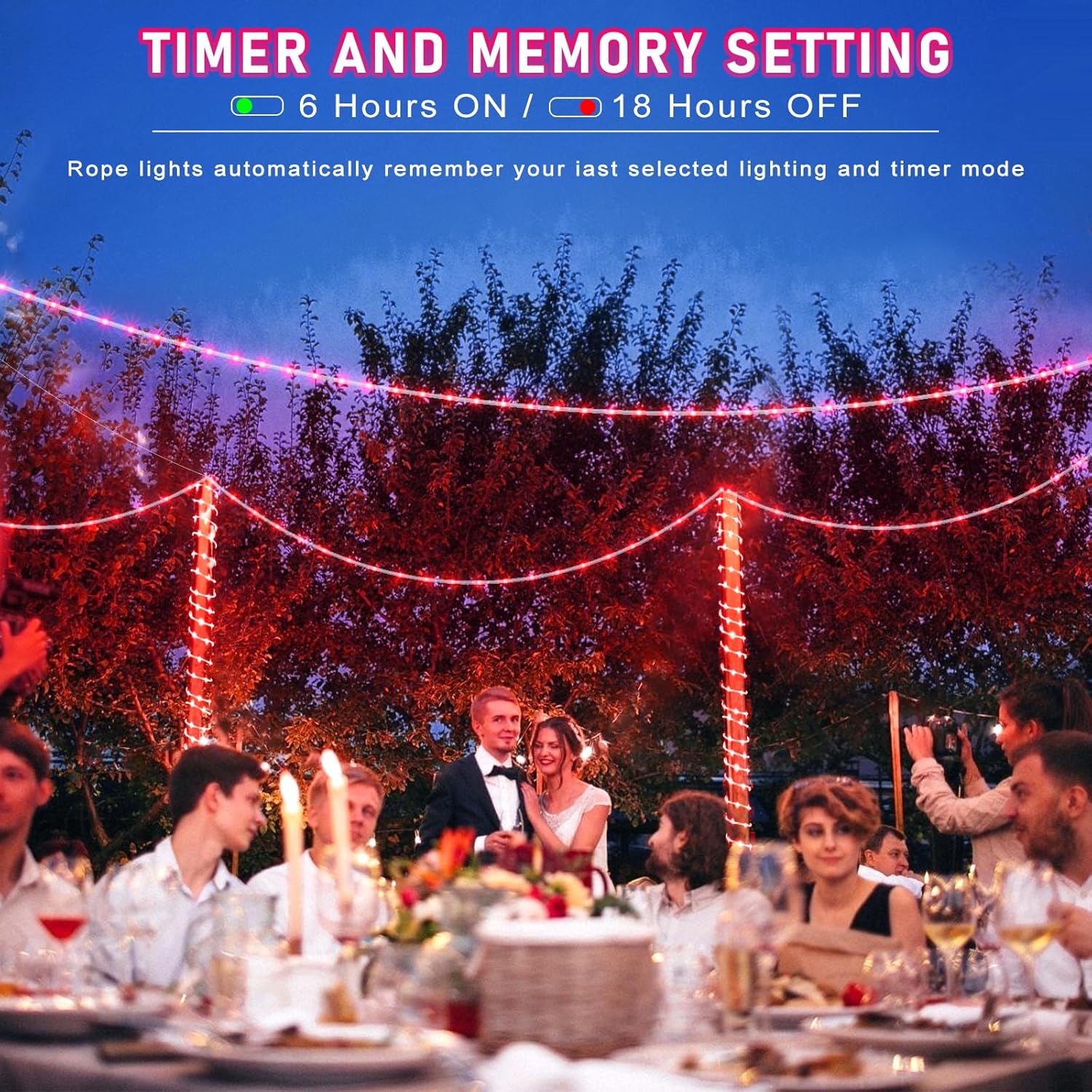 - Waterproof Outdoor String Lights: IP65 Waterproof, they are suitable for all weather use, remaining bright and sparkling even during strong rain and windy days. The outdoor rope lights is ideal for year-round outdoor decor and can illuminate gazebos, canopy, corridors, gardens, and patios. But please note the plug is not waterproof.