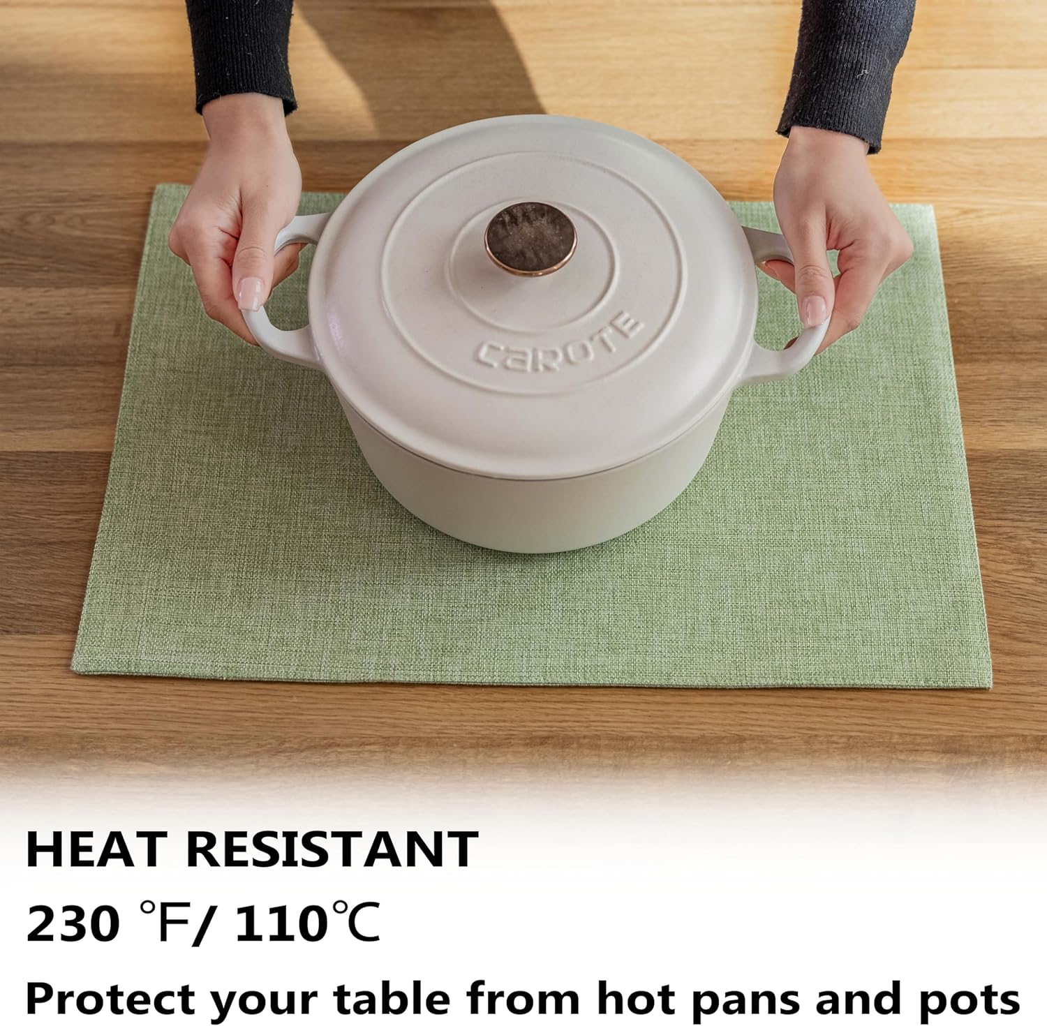 - Premium Fabrics: Our place mats are made of faux linen fabric, eco-friendly and durable placemats with exquisite workmanship which can be used for a long time. Not waterproof and liquid can go through placemats.