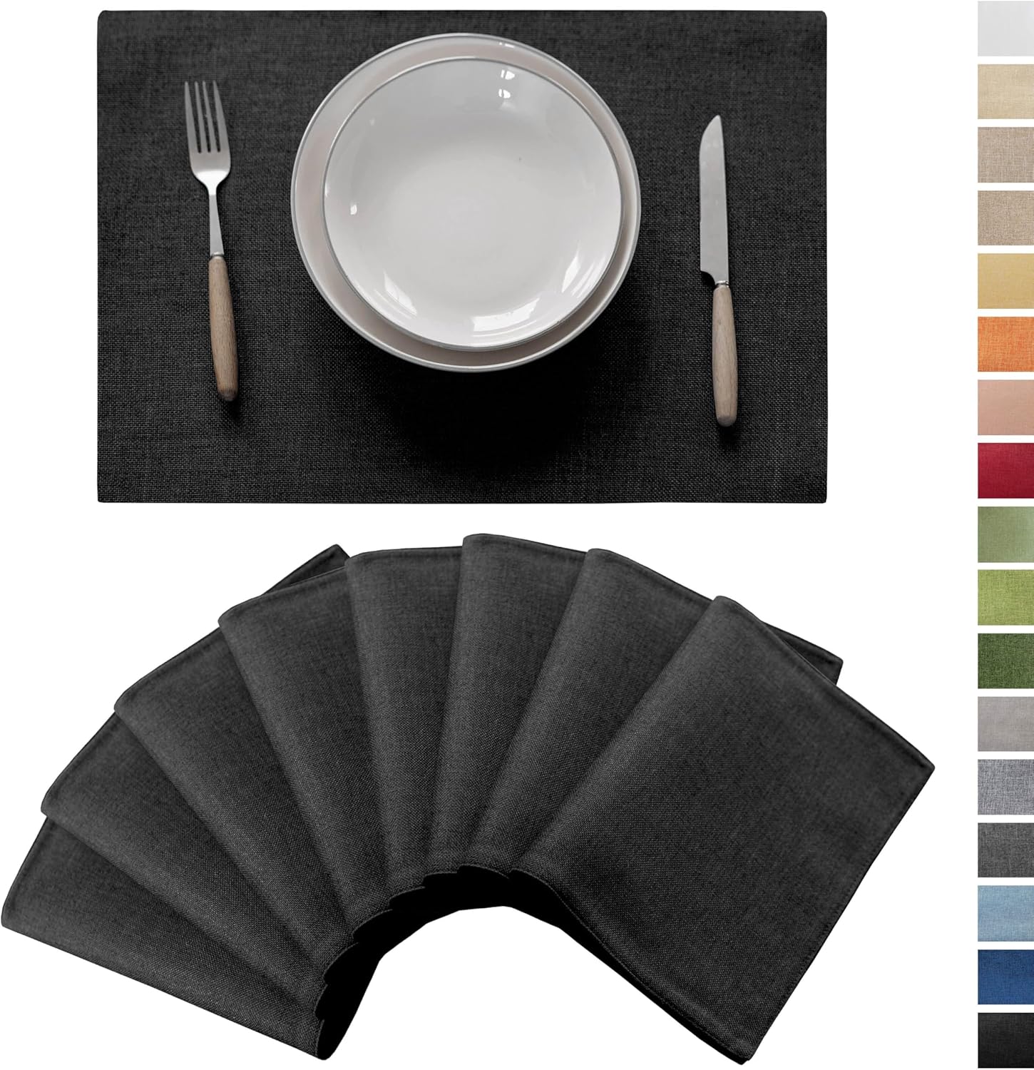 Demetex Black Cloth Placemats Set of 8 Wipeable Classic Place Mats Heat Resistant Table Mats for Dining Room Kitchen Tables, 13x19 inch, Black