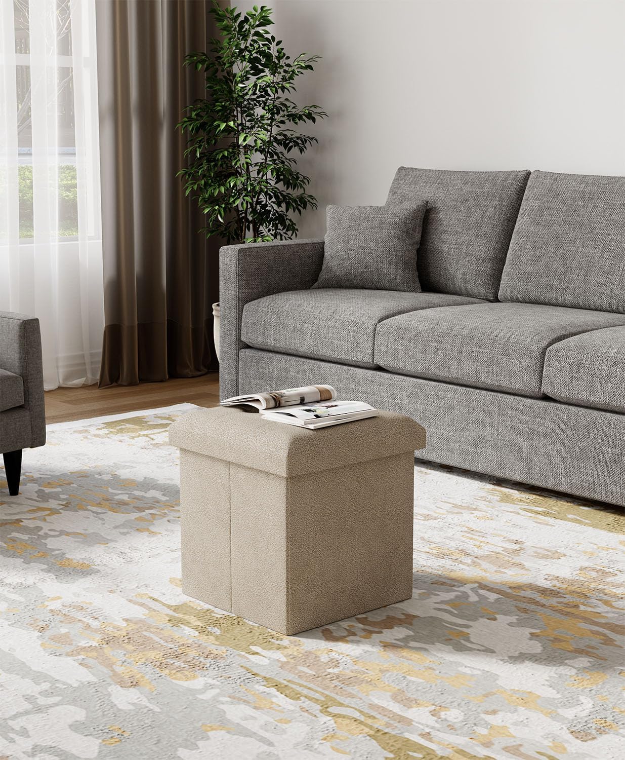 15 Inches Small Folding Storage Ottoman Cube, Storage Footrest, Foot Rest Stool, for Living Room, Bedroom, Dorm, Hallway, Entryway, Sandy Beige