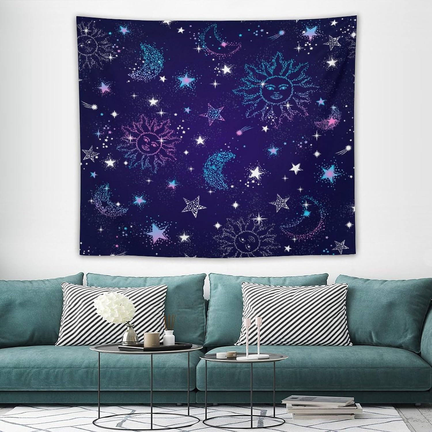 HZOHNAGO Boho Sun Moon Tapestry Purple Blue Sun Stars Galaxy Pattern Printed Wall Tapestry Wall Hanging for Bedroom Living Room Dorm 60" W x 50" H
